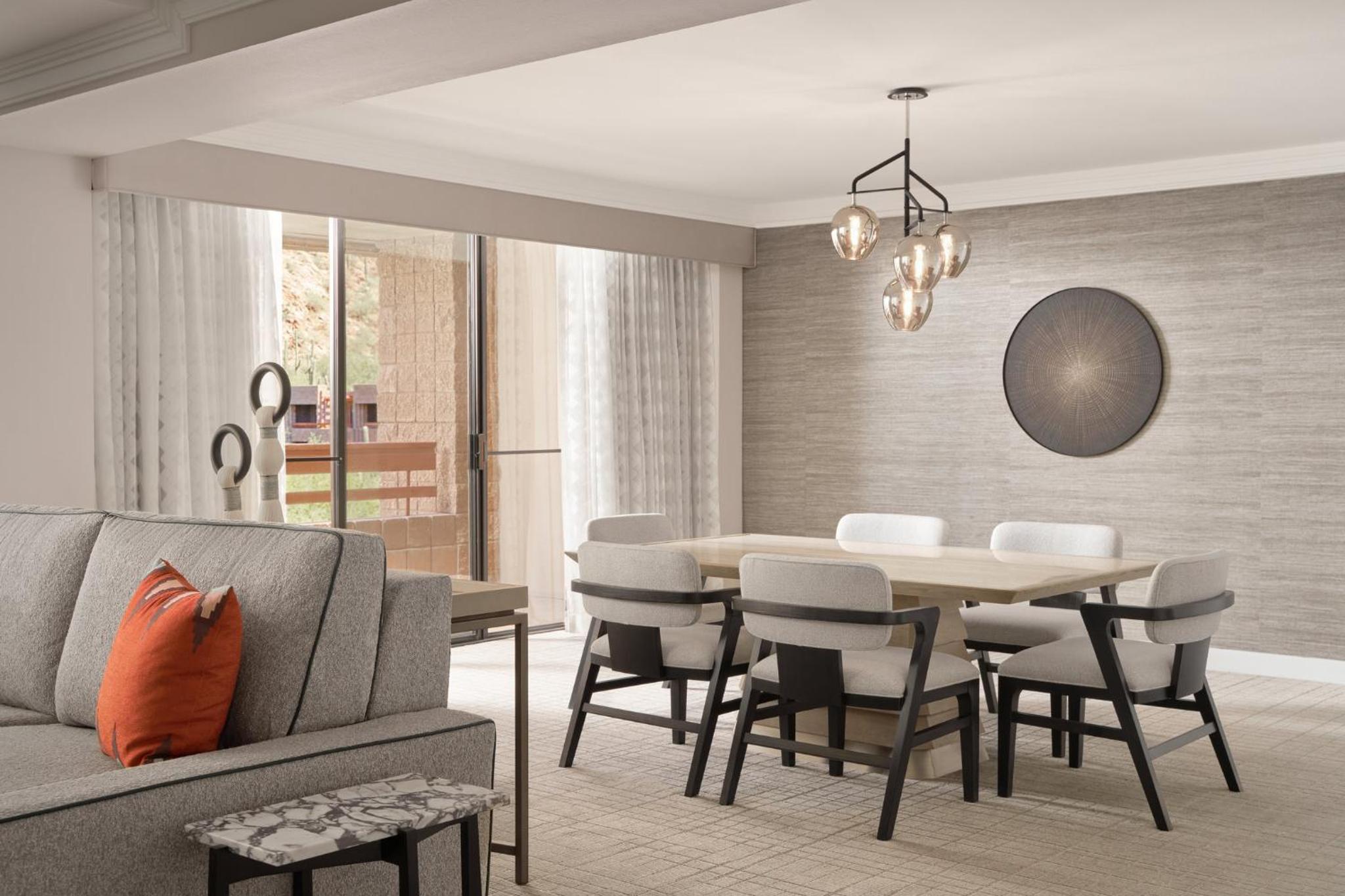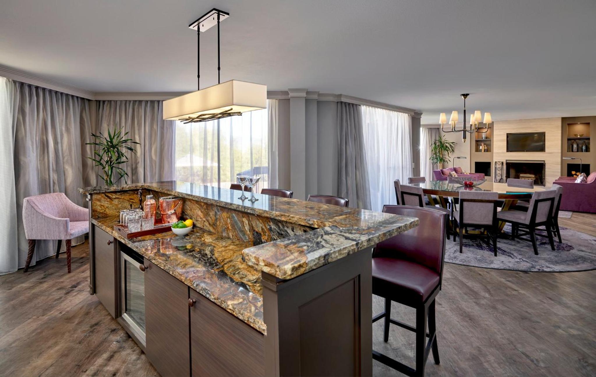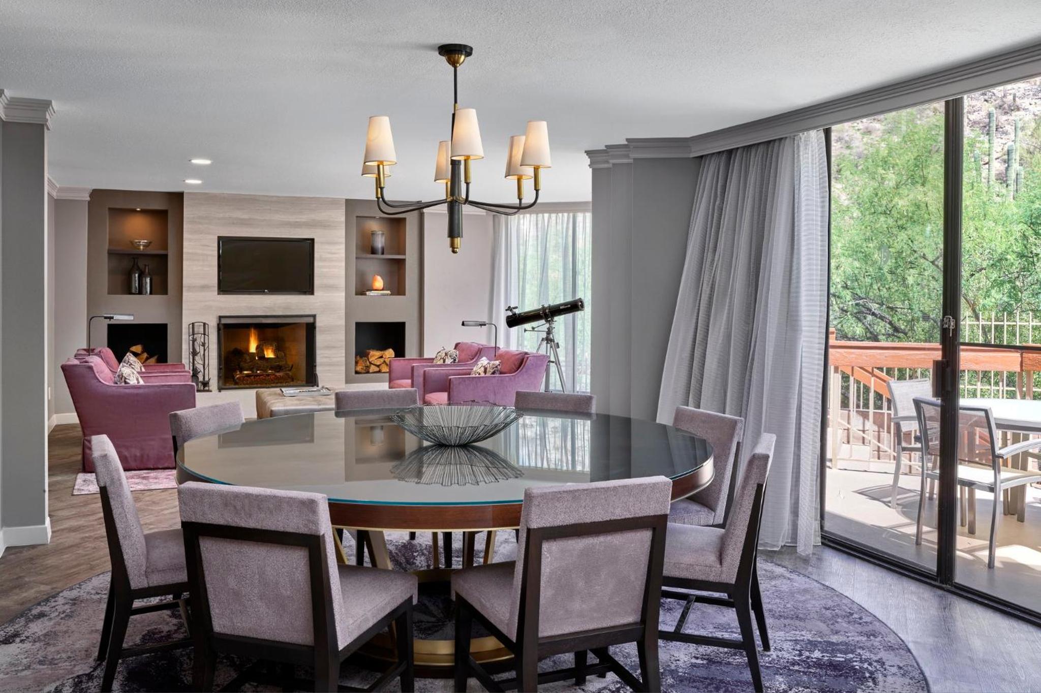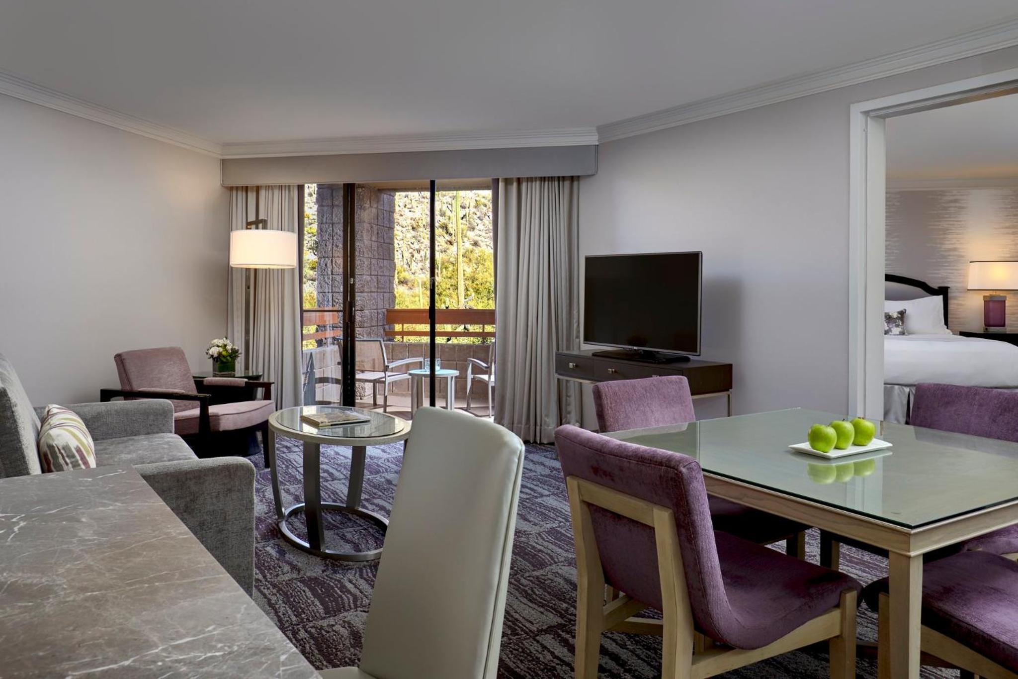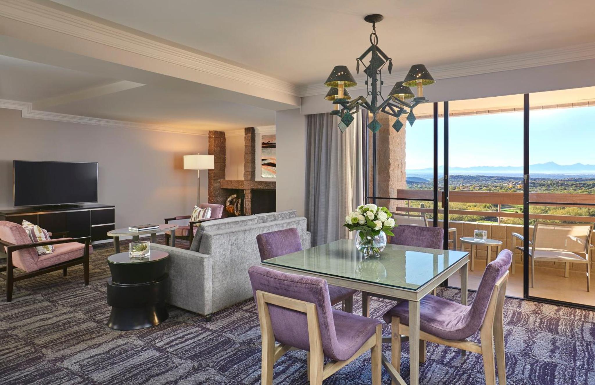 Each guestroom at the resort offers a slice of paradise, with a large soaking tub and a private balcony that provides a front-row seat to the breathtaking views of the desert and mountains. It’s the ideal place to unwind together, soaking in both the natural beauty and each other’s company.