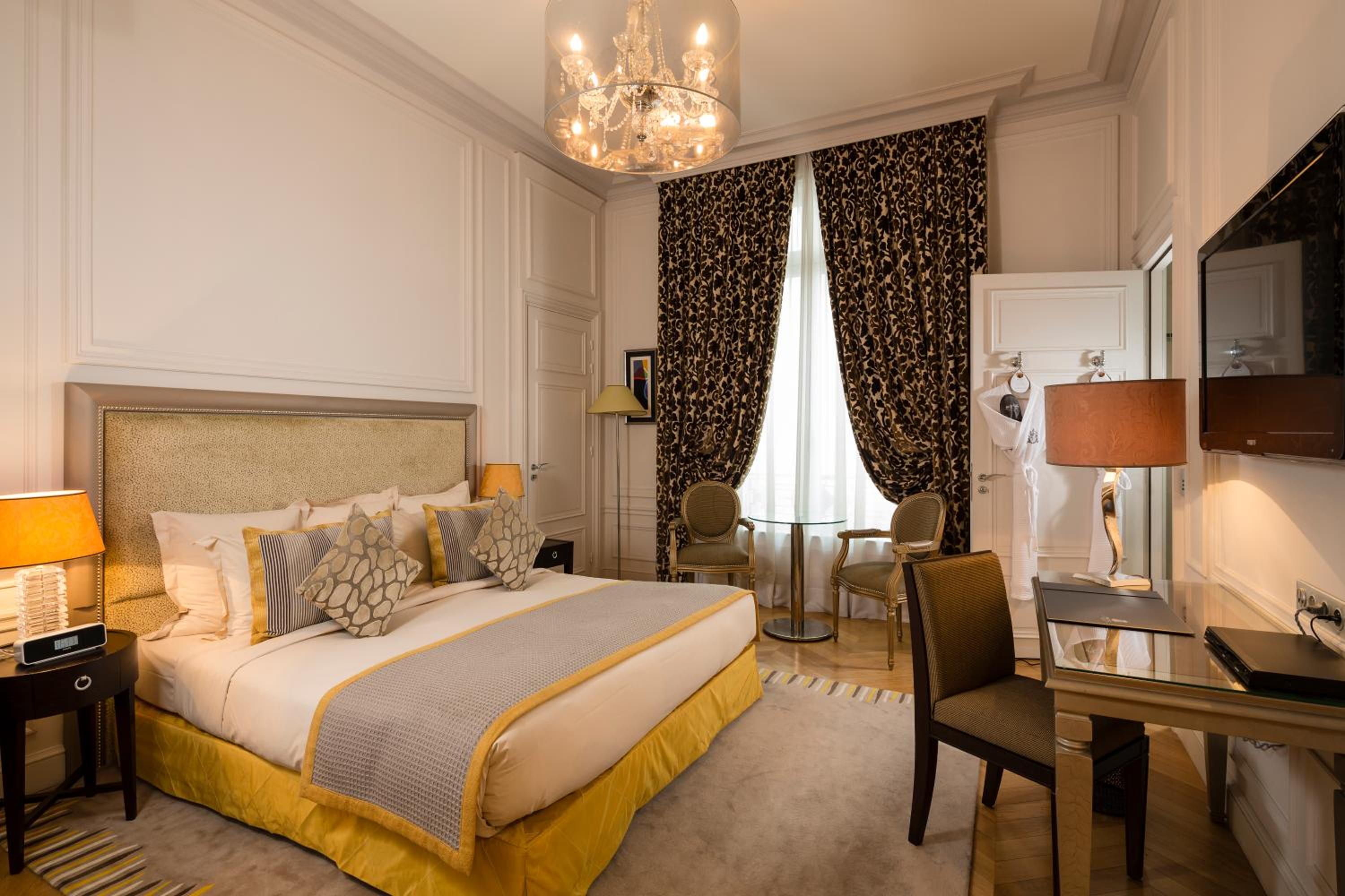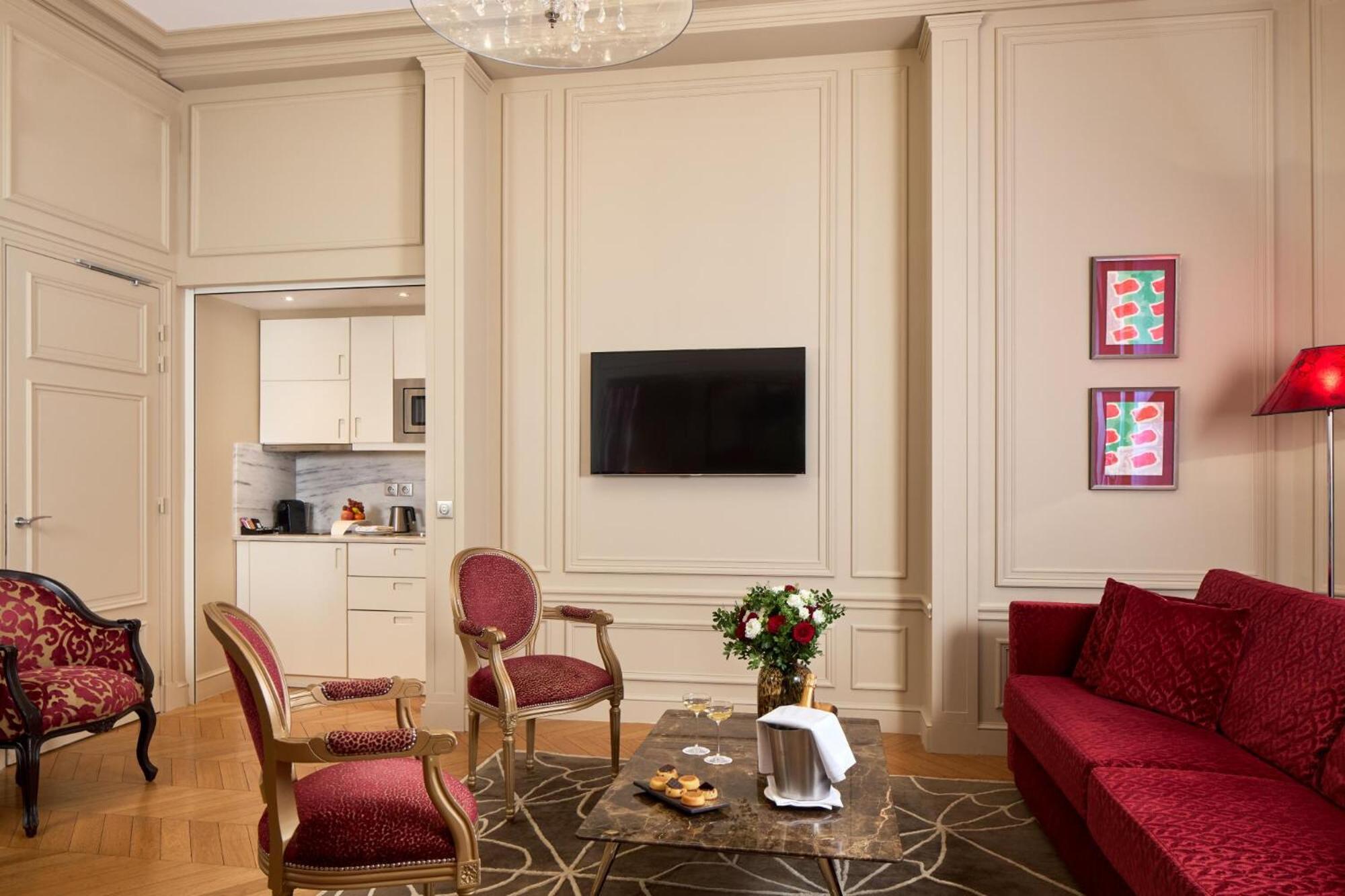 The Majestic Hotel Spa in Paris’s 16th district offers a blend of old Parisian charm and modern art pieces in its 5-star rooms and suites. Enjoy amenities like flat-screen TVs, iPod docking stations, and private terraces or kitchenettes.