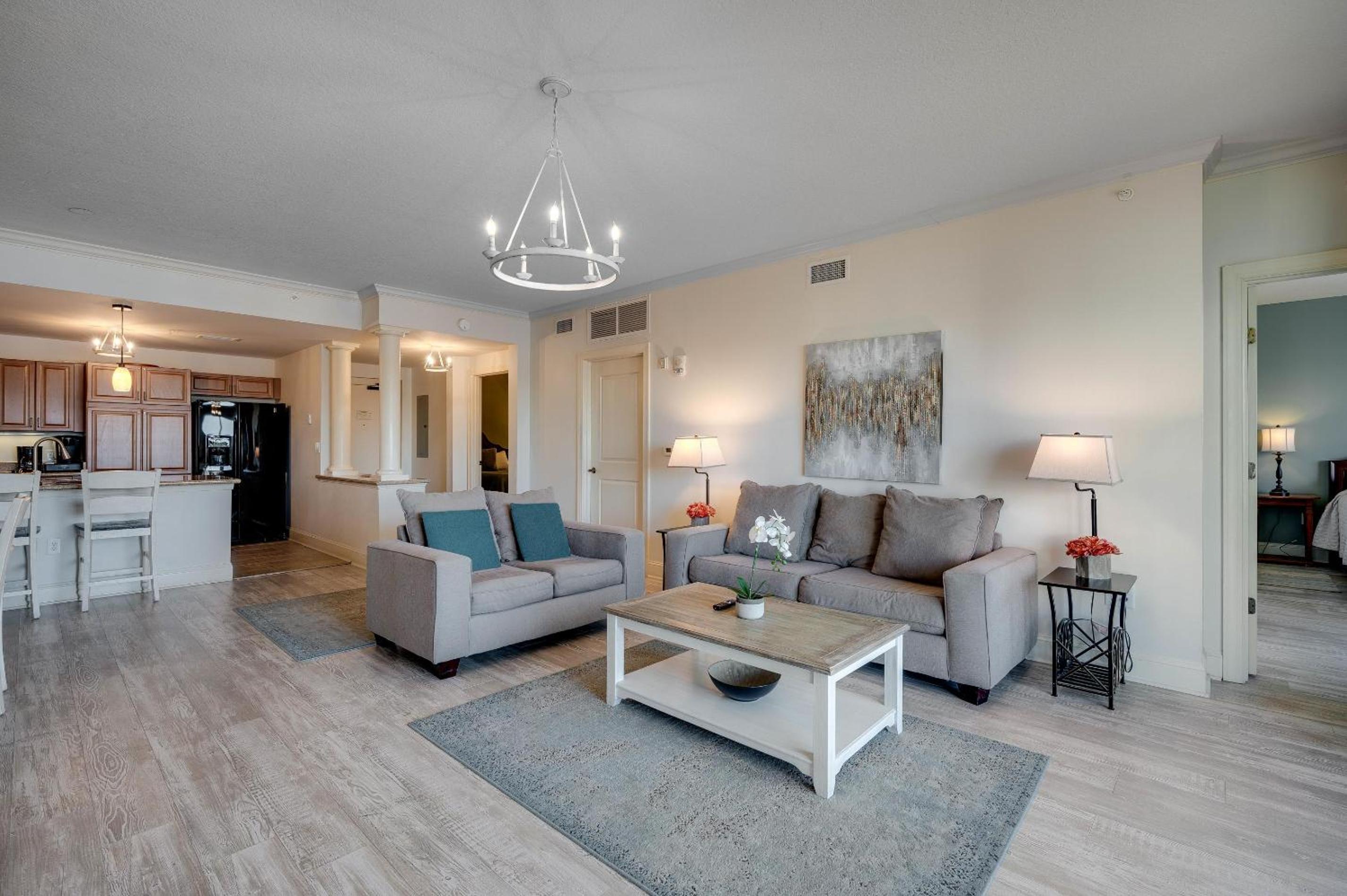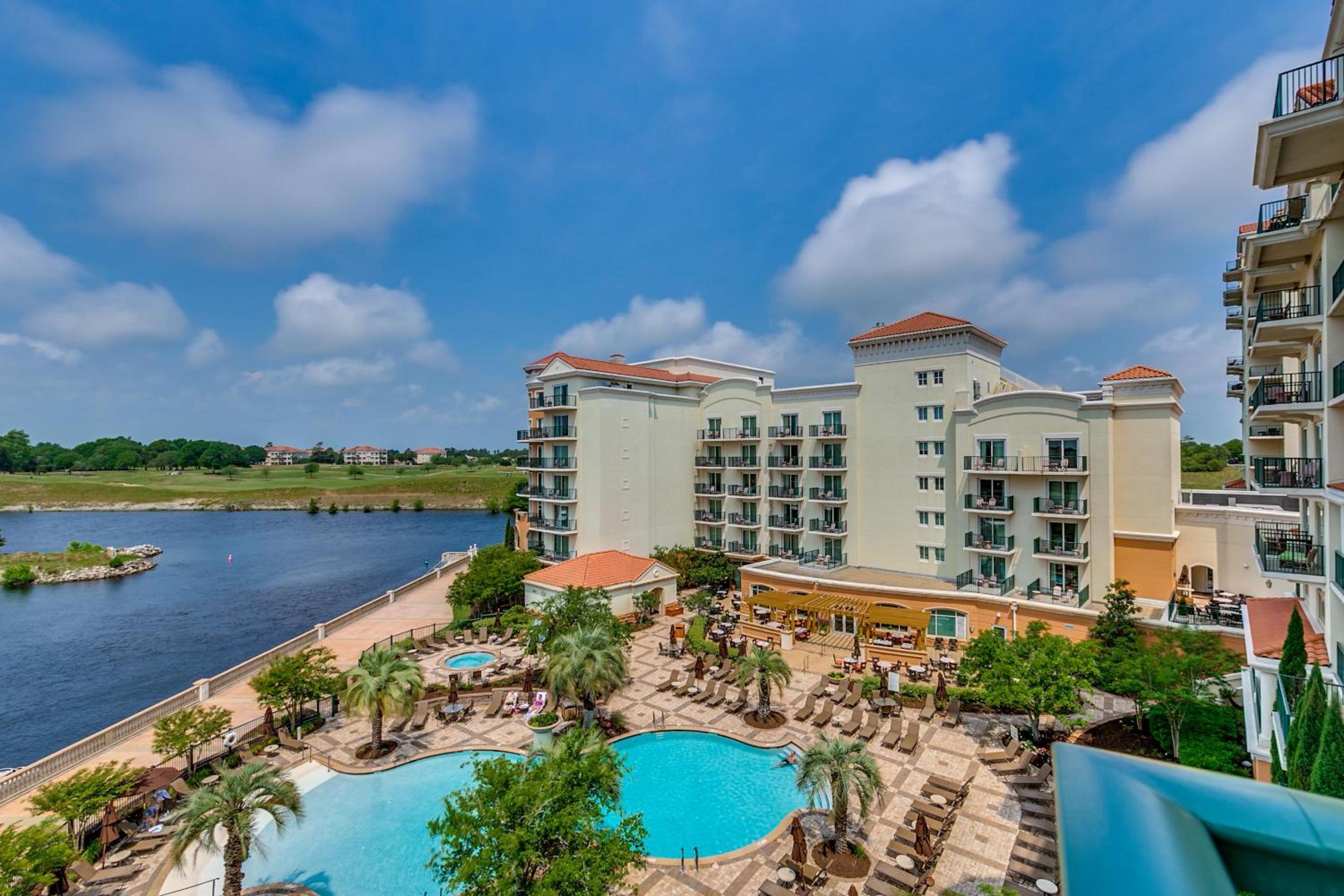 Experience the epitome of luxury at Marina Inn Grande Dunes - 7-503 in Myrtle Beach. Enjoy breathtaking pool views from the terrace of this spacious holiday home. The accommodation boasts a fully equipped kitchen, comfortable living and dining areas, and private balconies with outdoor furniture.