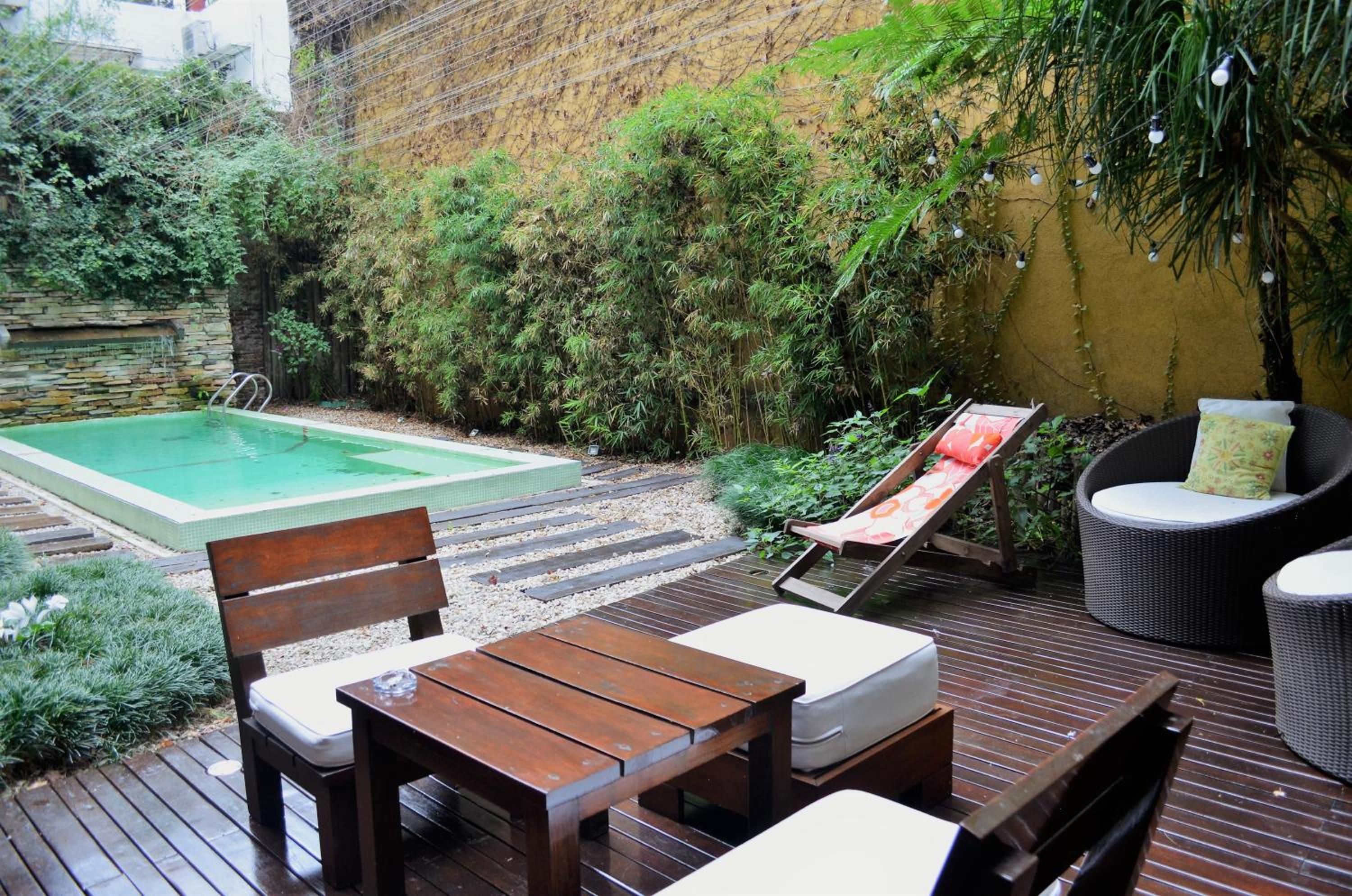 Escape into tranquility within Mine Hotel’s lush garden oasis, a haven where honeymooners can unwind amidst the greenery. The outdoor pool invites moments of relaxation, providing a refreshing respite after exploring the vibrant streets of Buenos Aires.