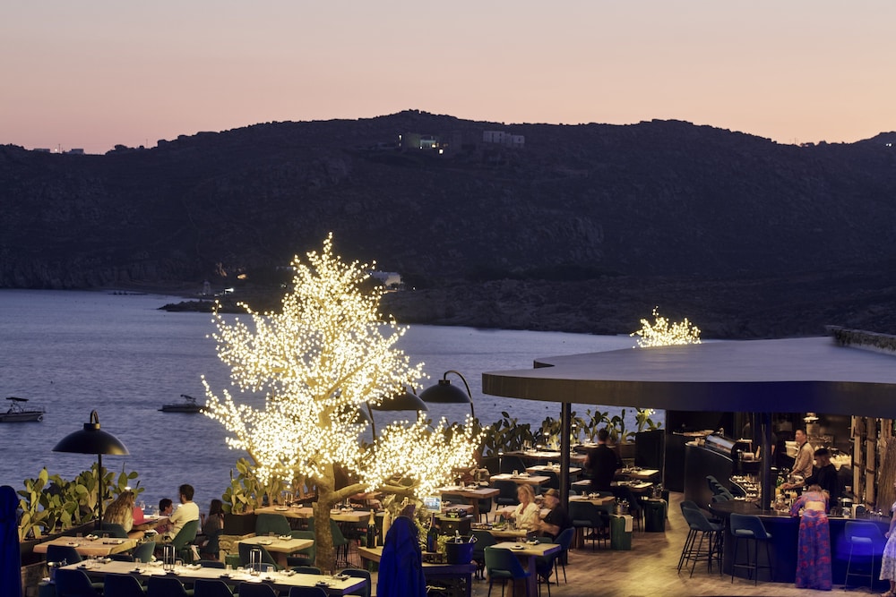 The Myconian Imperial Resort is home to two posh restaurants and two bars, where exquisite meals and refreshing drinks await. For a unique culinary experience, make sure to visit the popular Elia Beach Restaurant, known for its sumptuous seafood dishes. When it’s time to unwind, the spa awaits with a heated indoor pool and exclusive Elemis treatments. You can also stay active in the gym or soak up the sun by one of the two outdoor pools overlooking the sea.