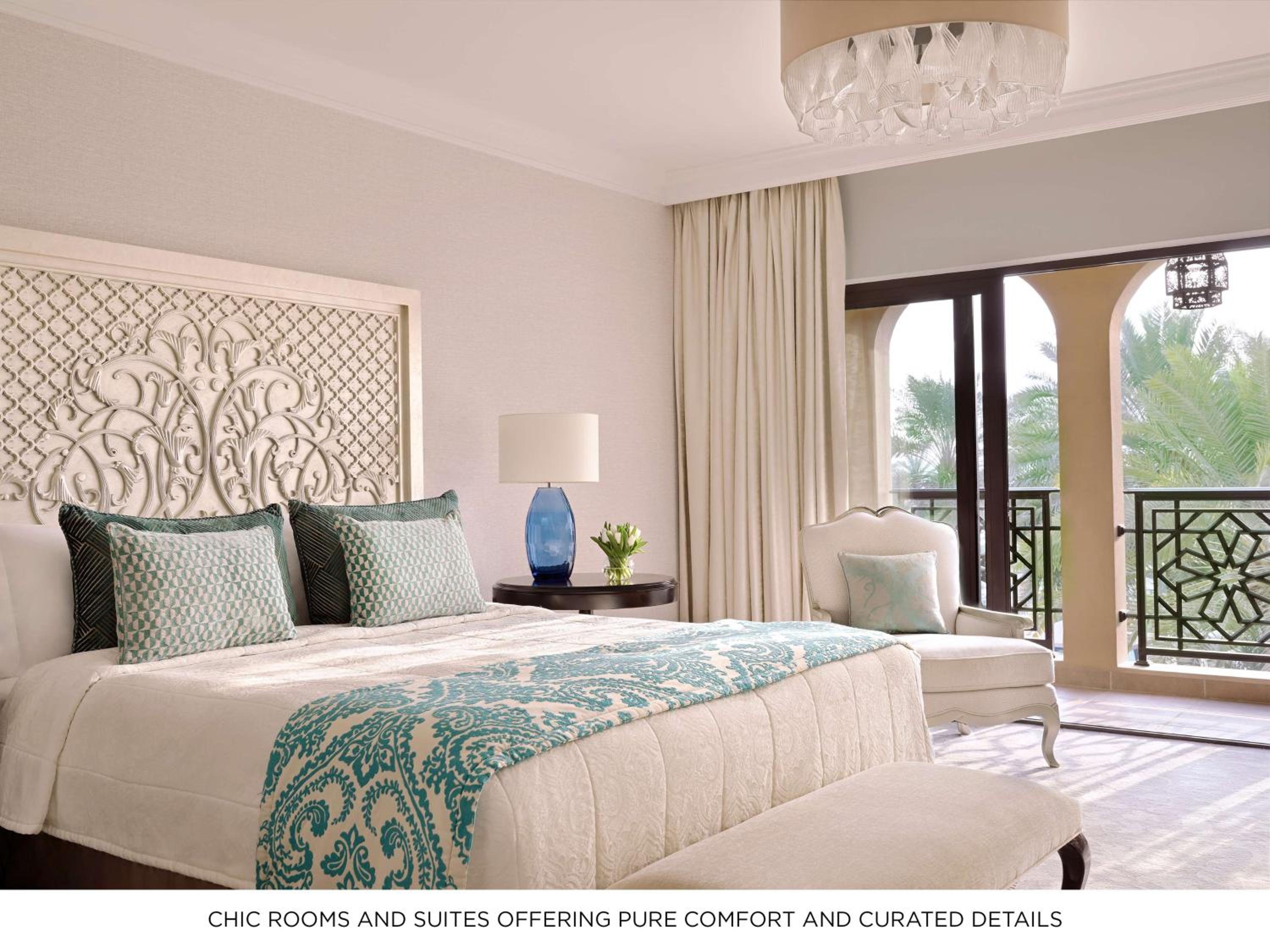 One&Only Royal Mirage offers chic guest rooms and suites that are the epitome of comfort. Each one is thoughtfully designed with an eye for detail, ensuring you feel right at home from the moment you step in. A feature that sets these rooms apart is the private balconies, offering unobstructed views of the verdant gardens or the serene Arabian Sea, making for perfect spots to enjoy a tranquil sunrise or a romantic sunset.