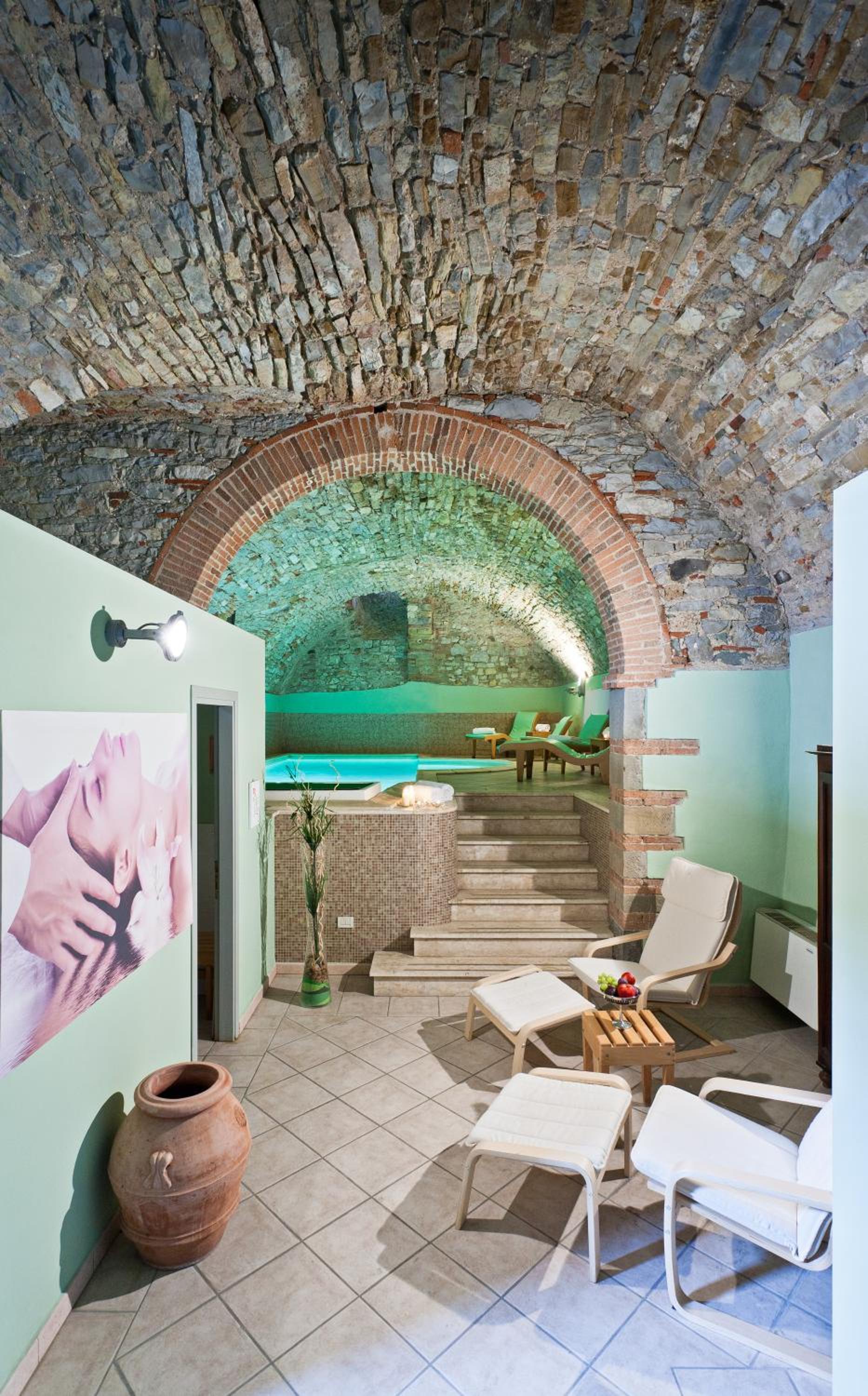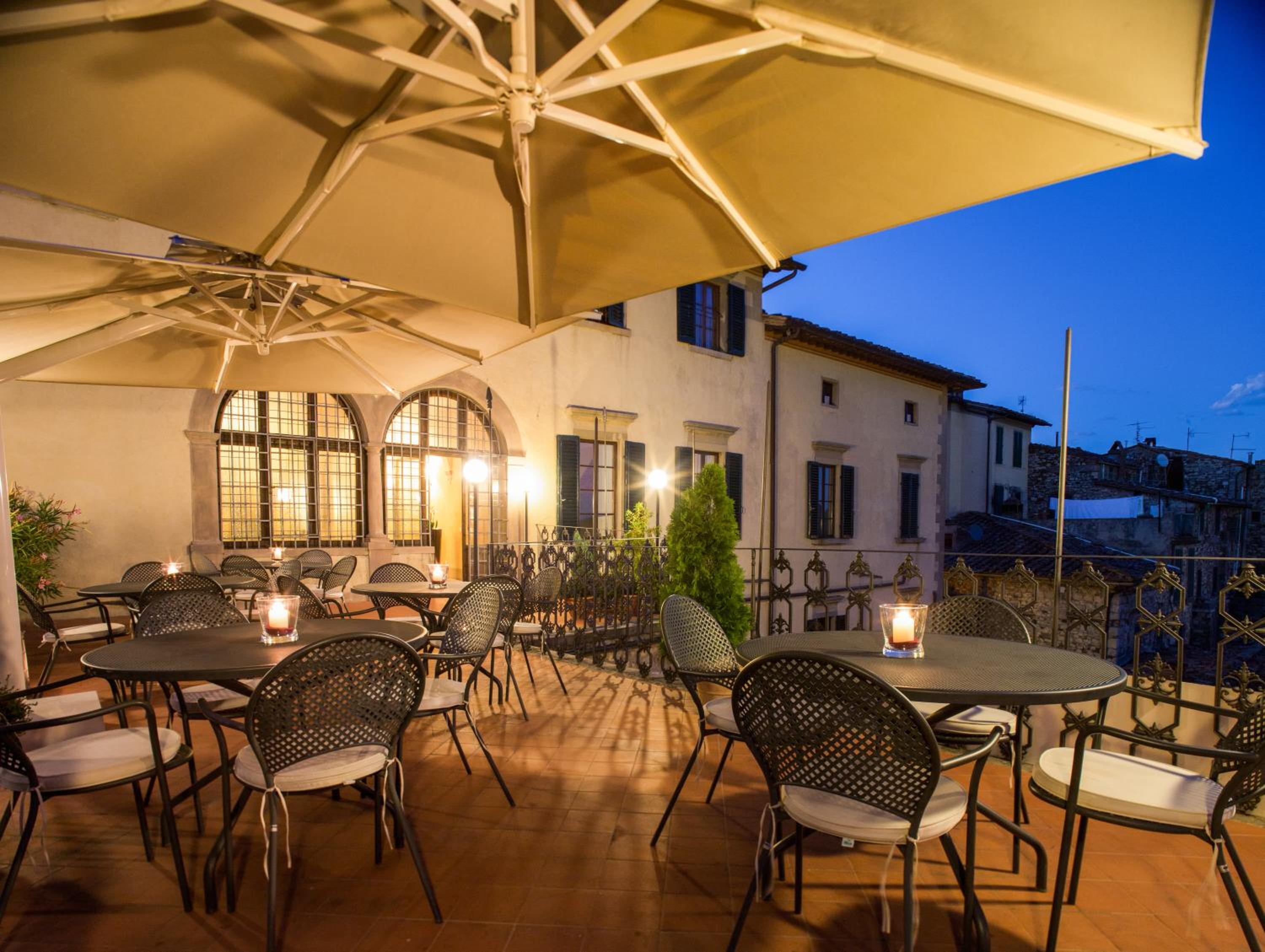 Indulge in massages, sauna, and a heated indoor pool at the wellness area. The outdoor hot tubs and private spa area add to the relaxation. La Perla Del Palazzo, the fine restaurant, serves delectable Tuscan cuisine in a lush garden setting, with drinks on a terrace overlooking the Chianti hills.