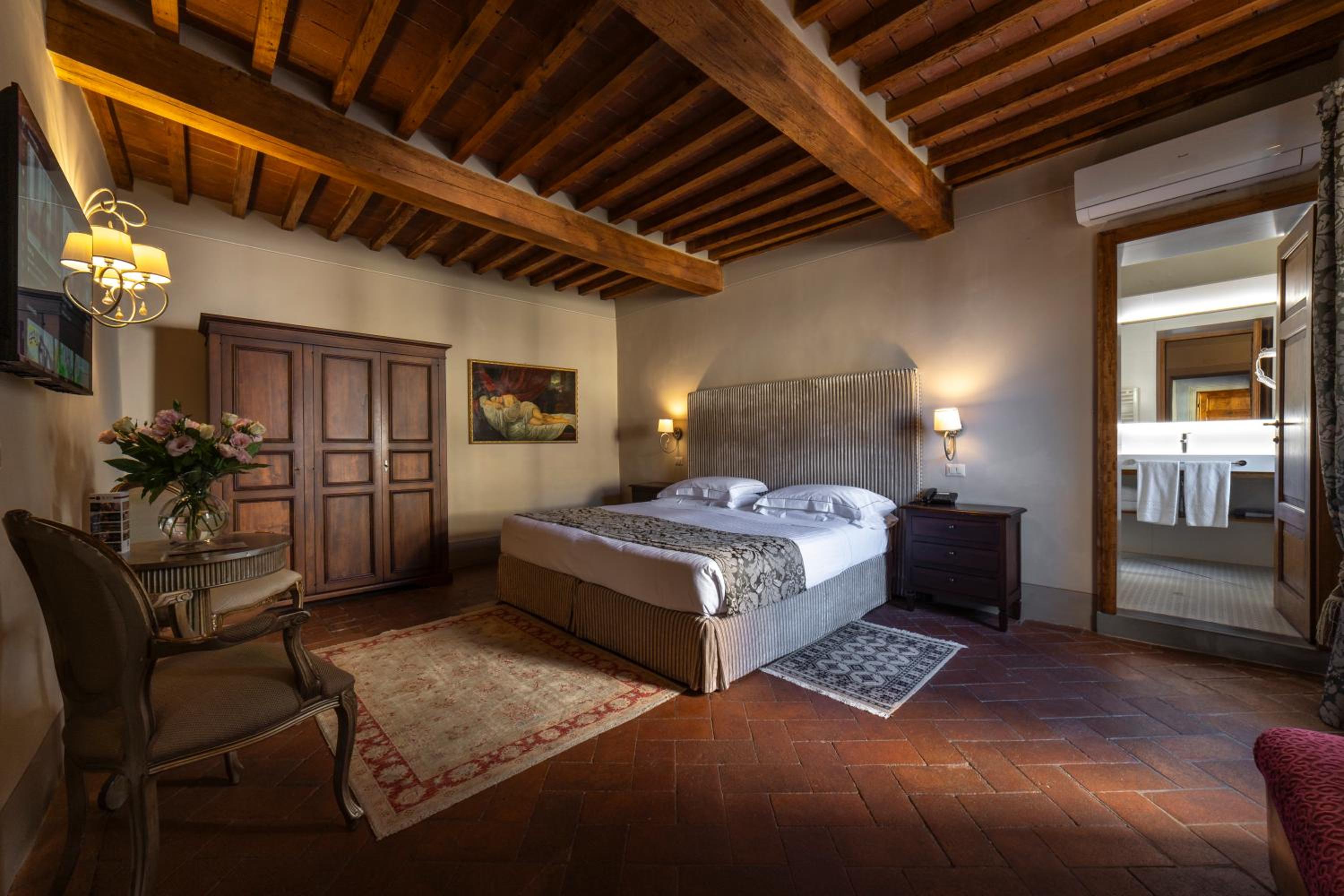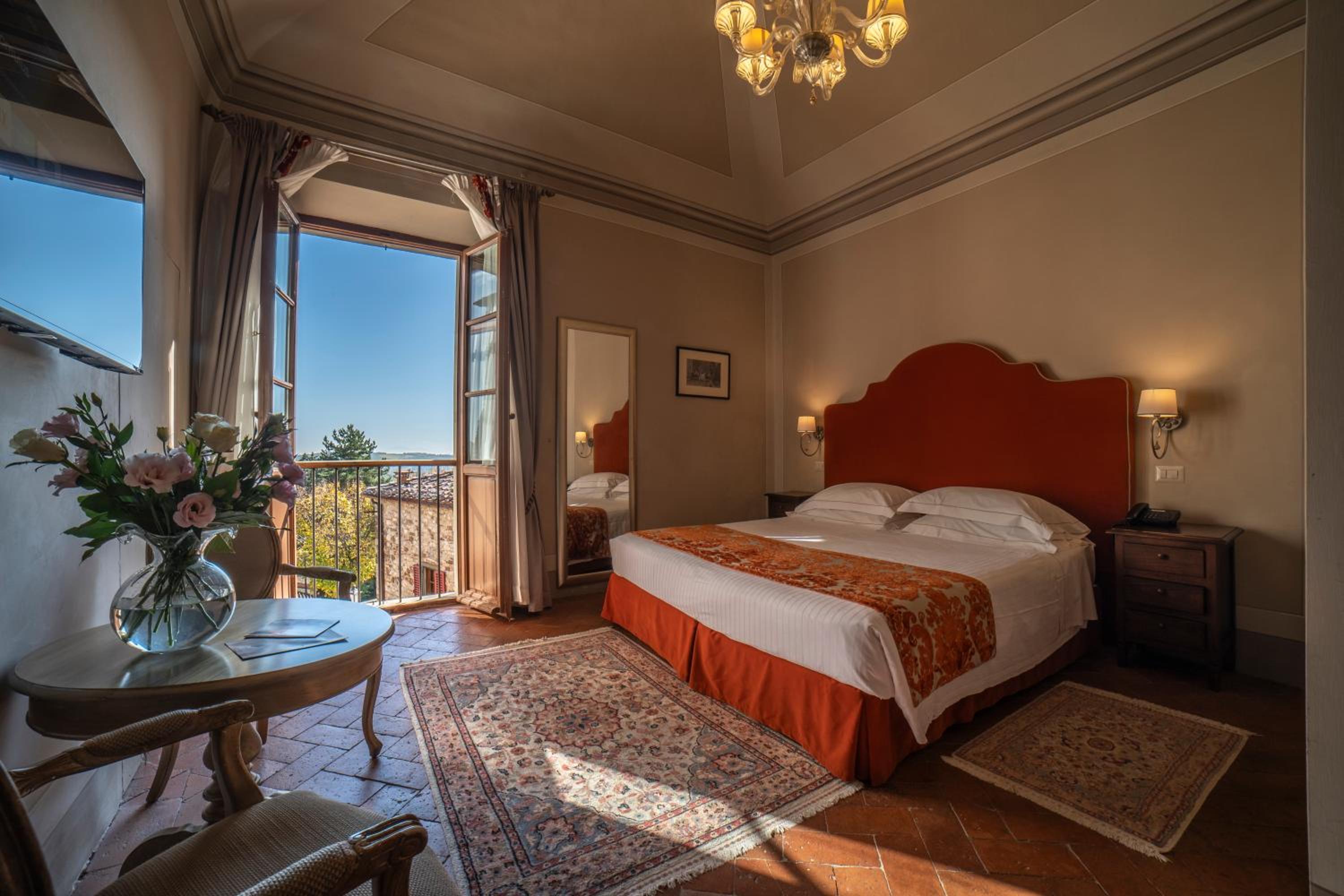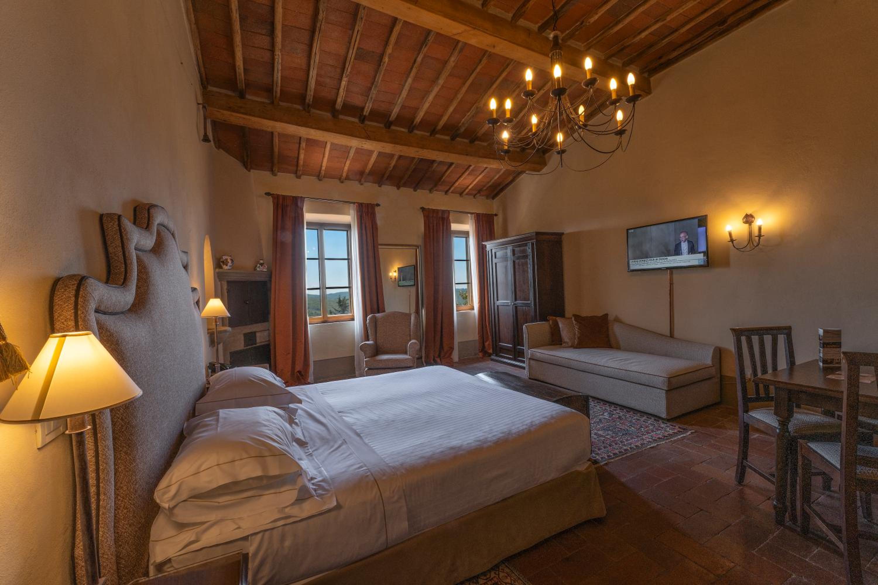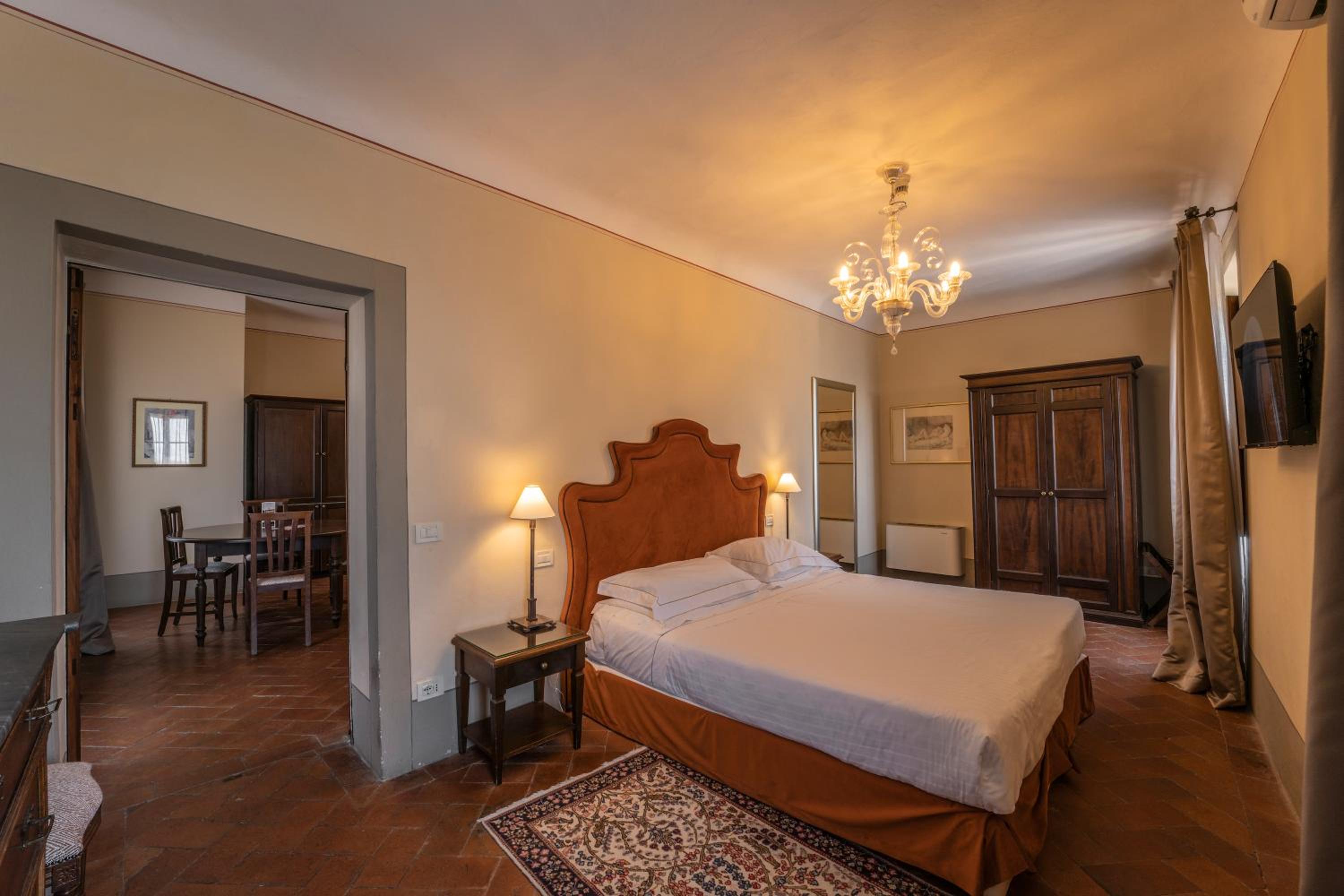 Palazzo Leopoldo, a majestic property blending a patrician villa from 1310 with a historical building, offers a unique stay in the medieval center of Radda. The large rooms, including junior suites and spacious suites, boast original fireplaces, frescoes, and modern amenities like a 32-inch LCD TV.