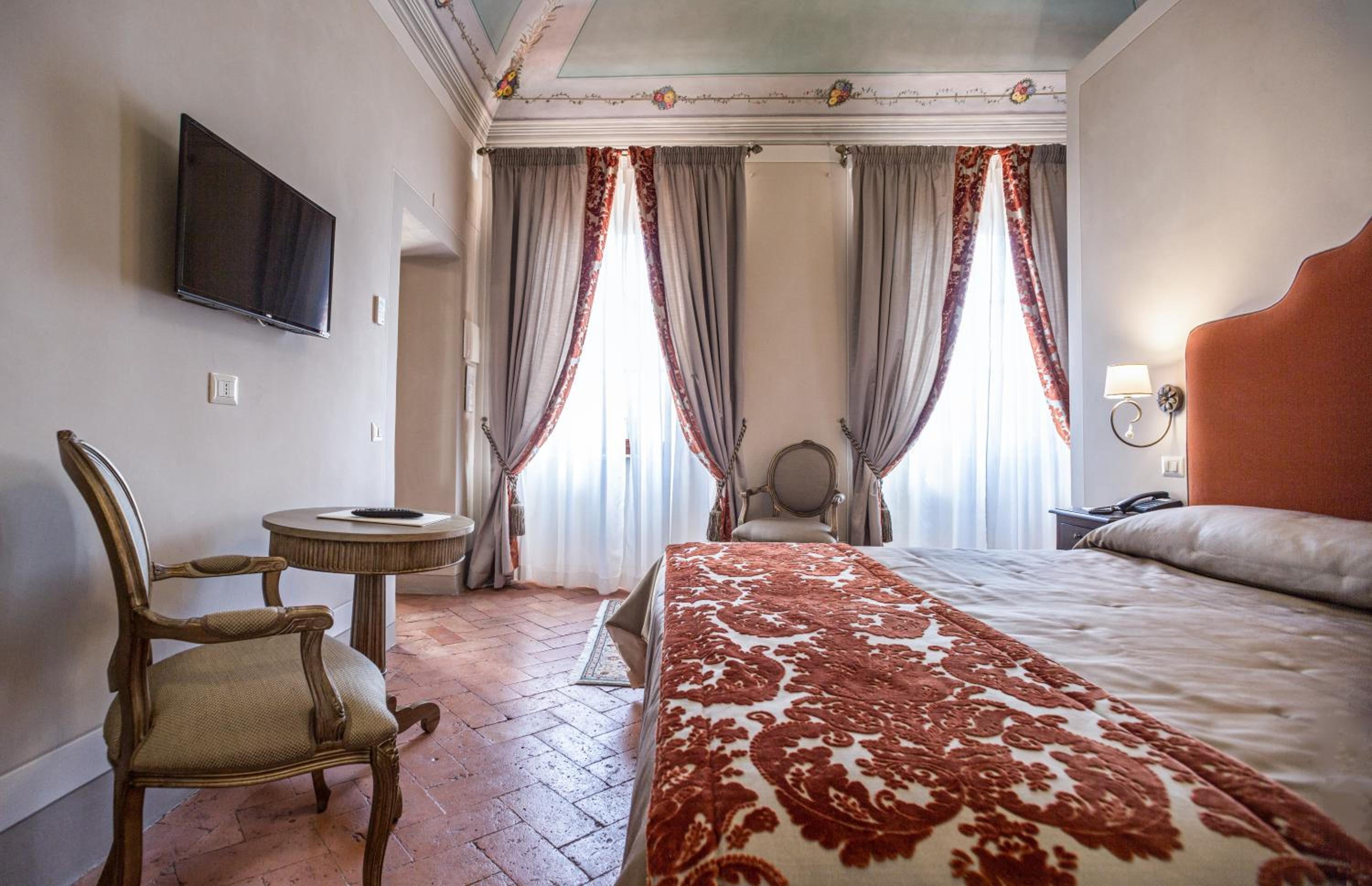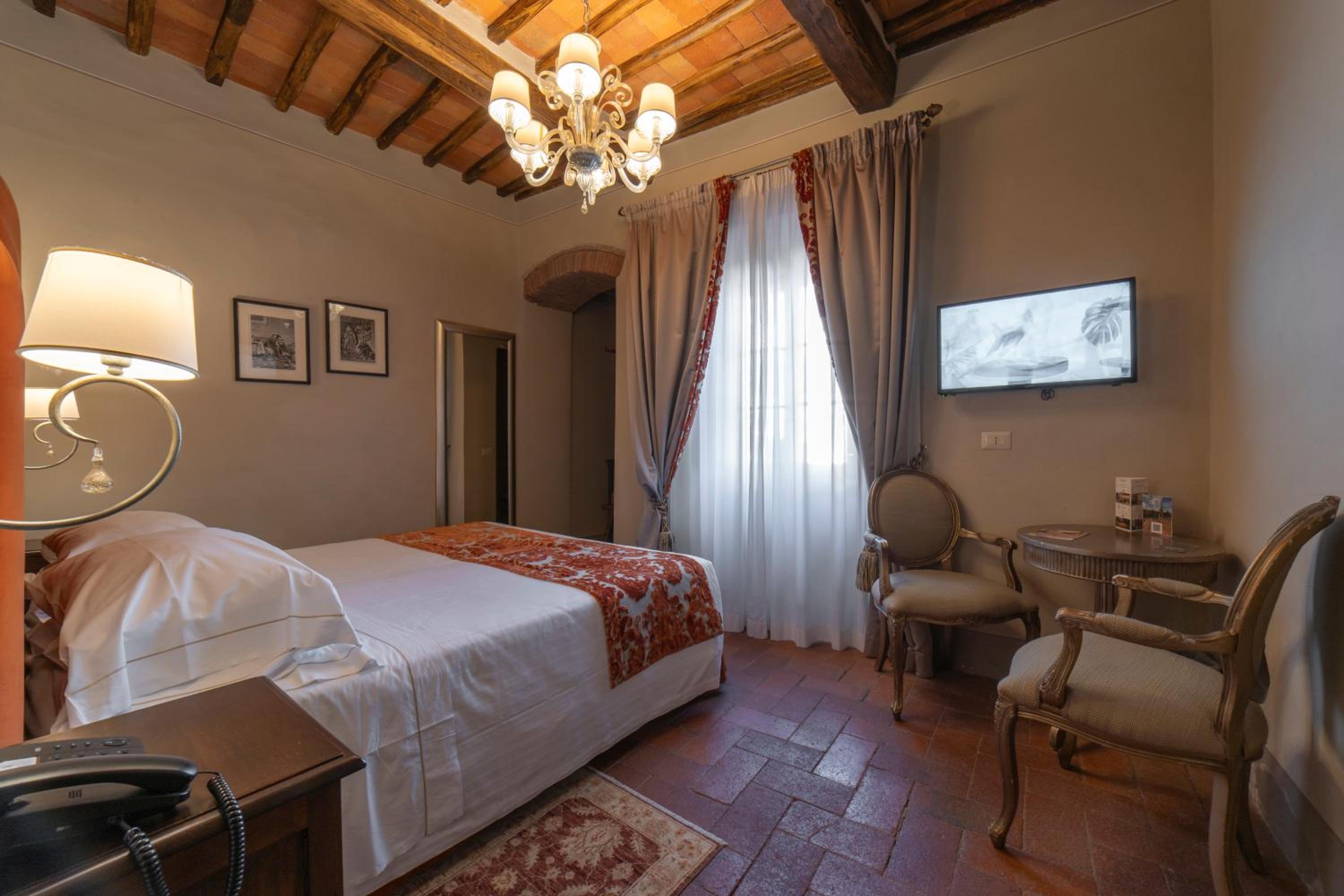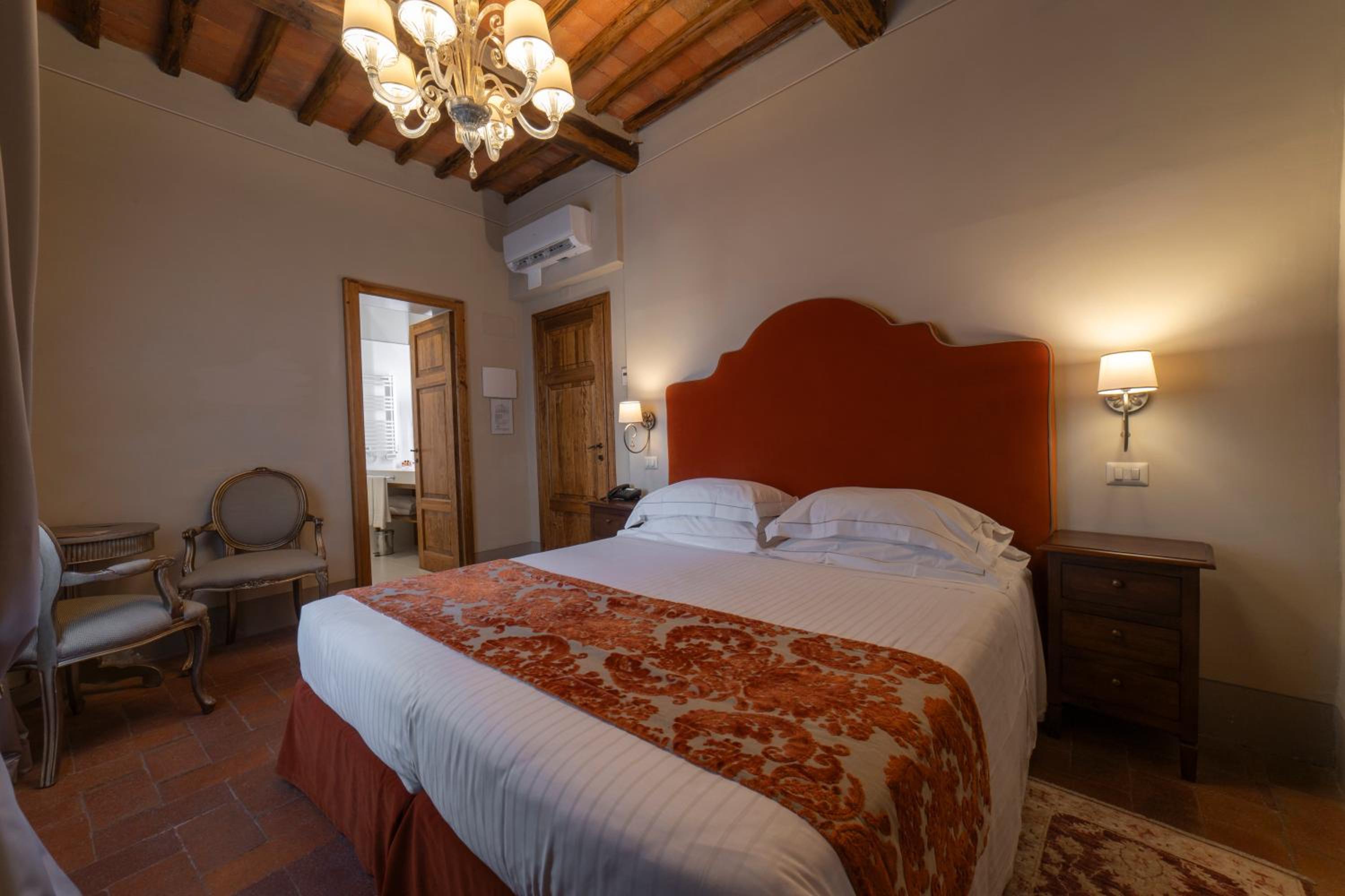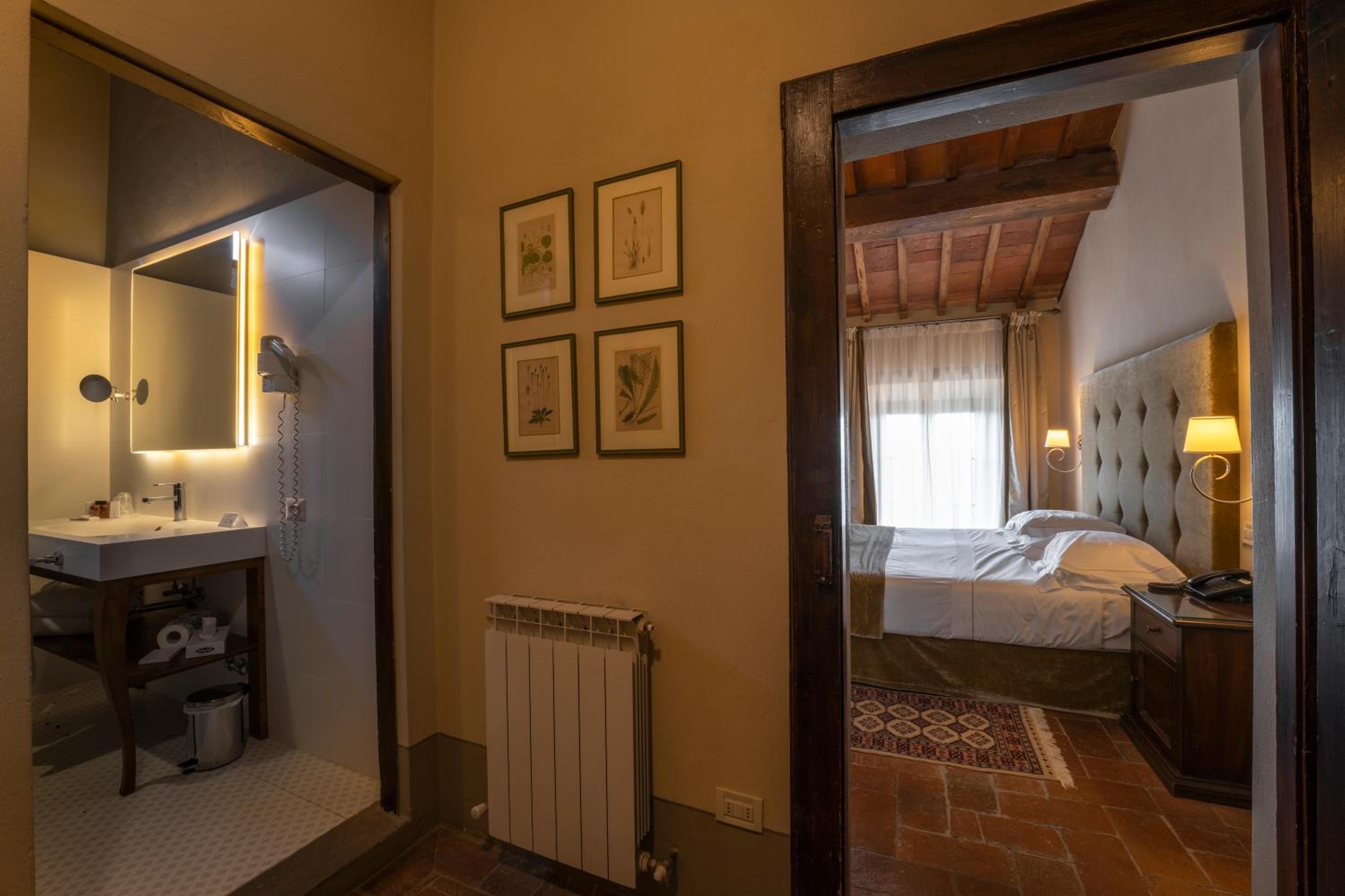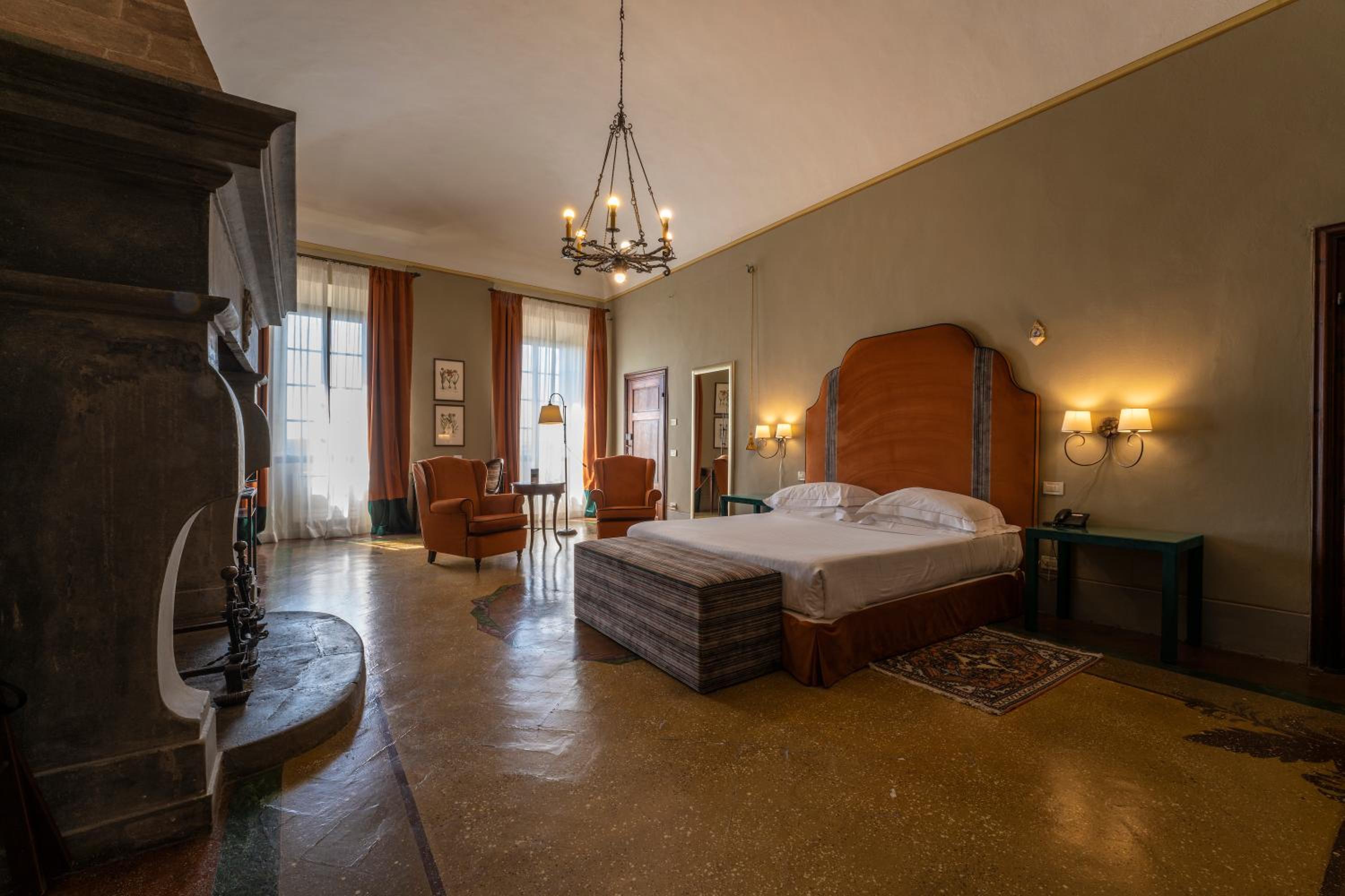 Palazzo Leopoldo, a majestic property blending a patrician villa from 1310 with a historical building, offers a unique stay in the medieval center of Radda. The large rooms, including junior suites and spacious suites, boast original fireplaces, frescoes, and modern amenities like a 32-inch LCD TV.