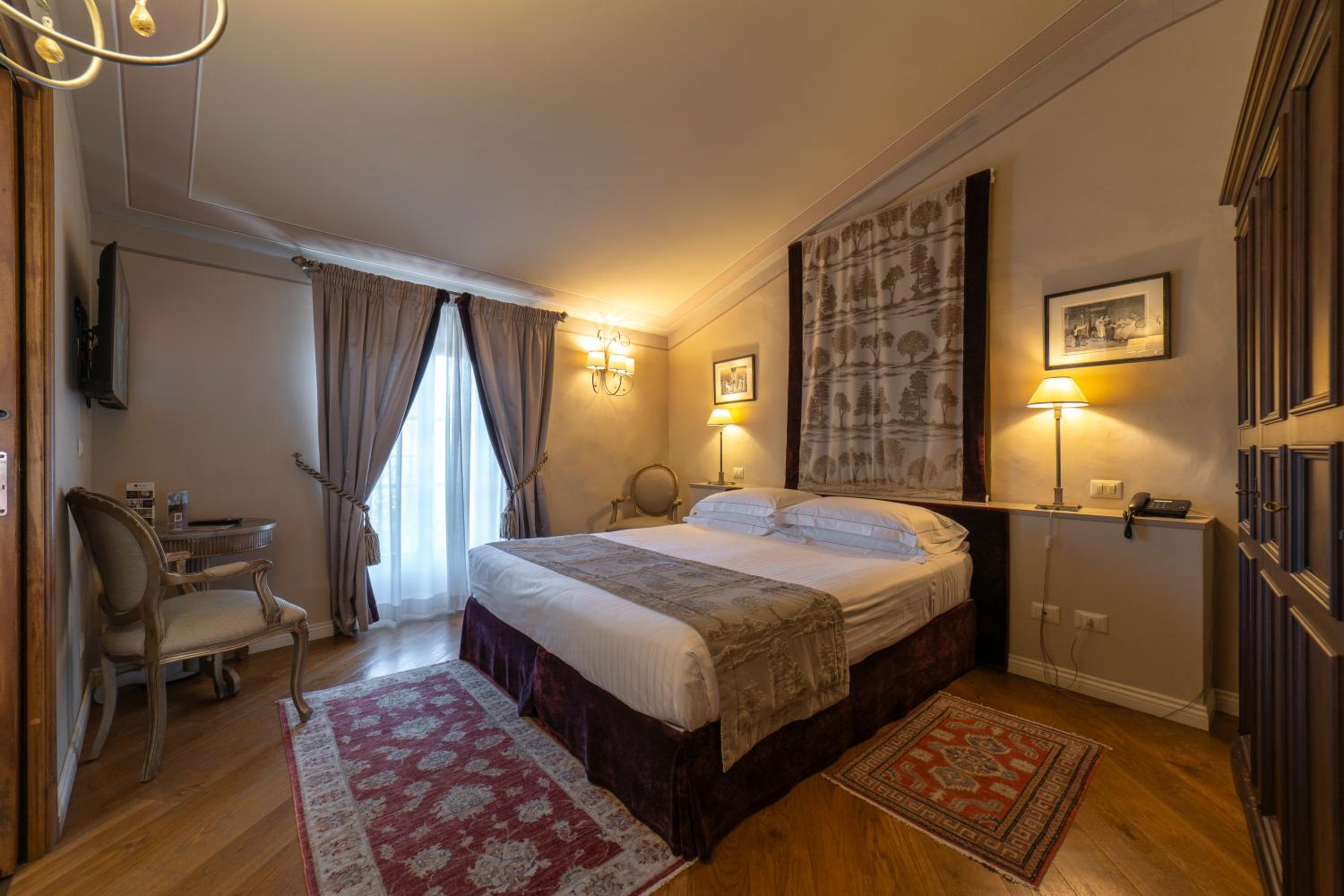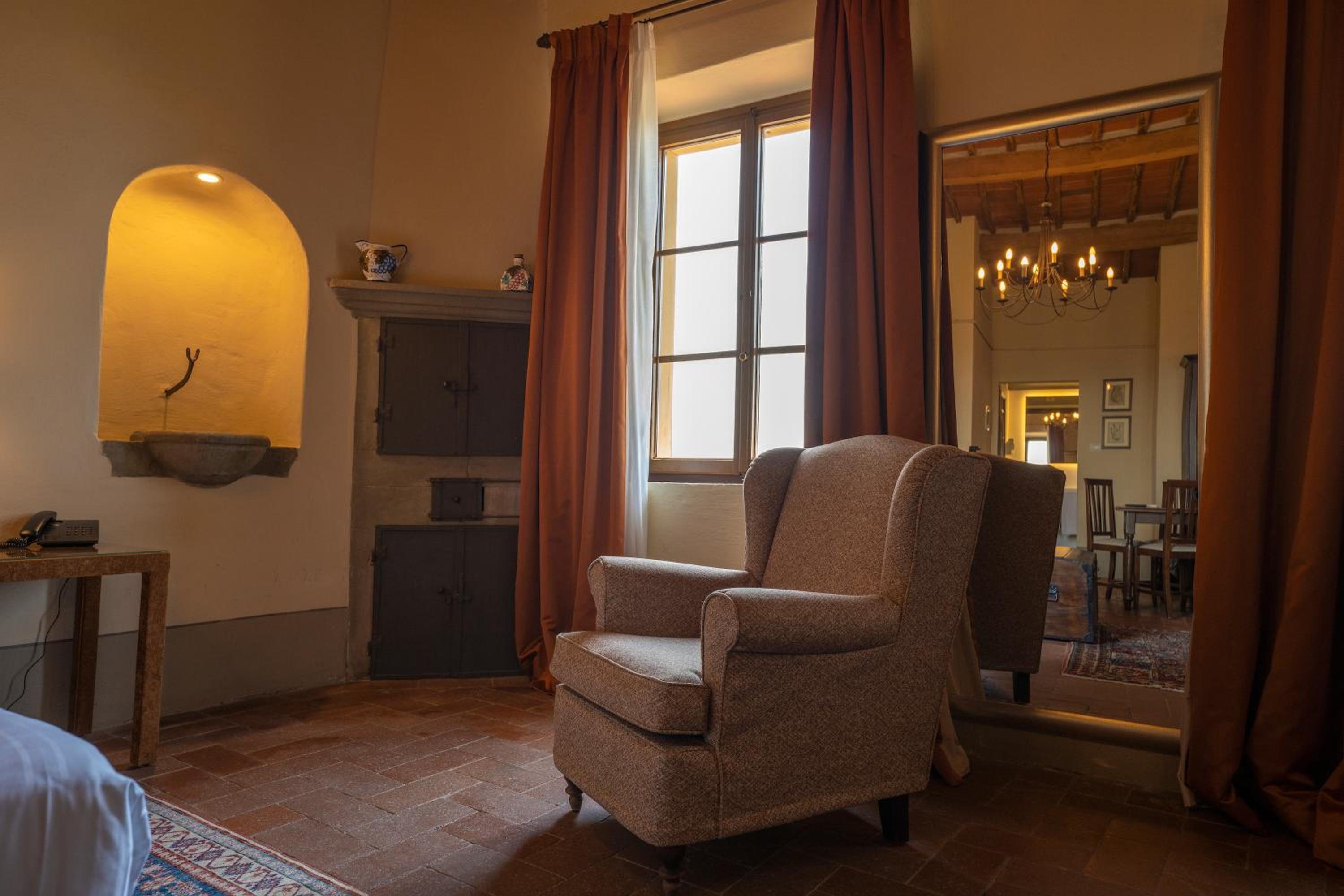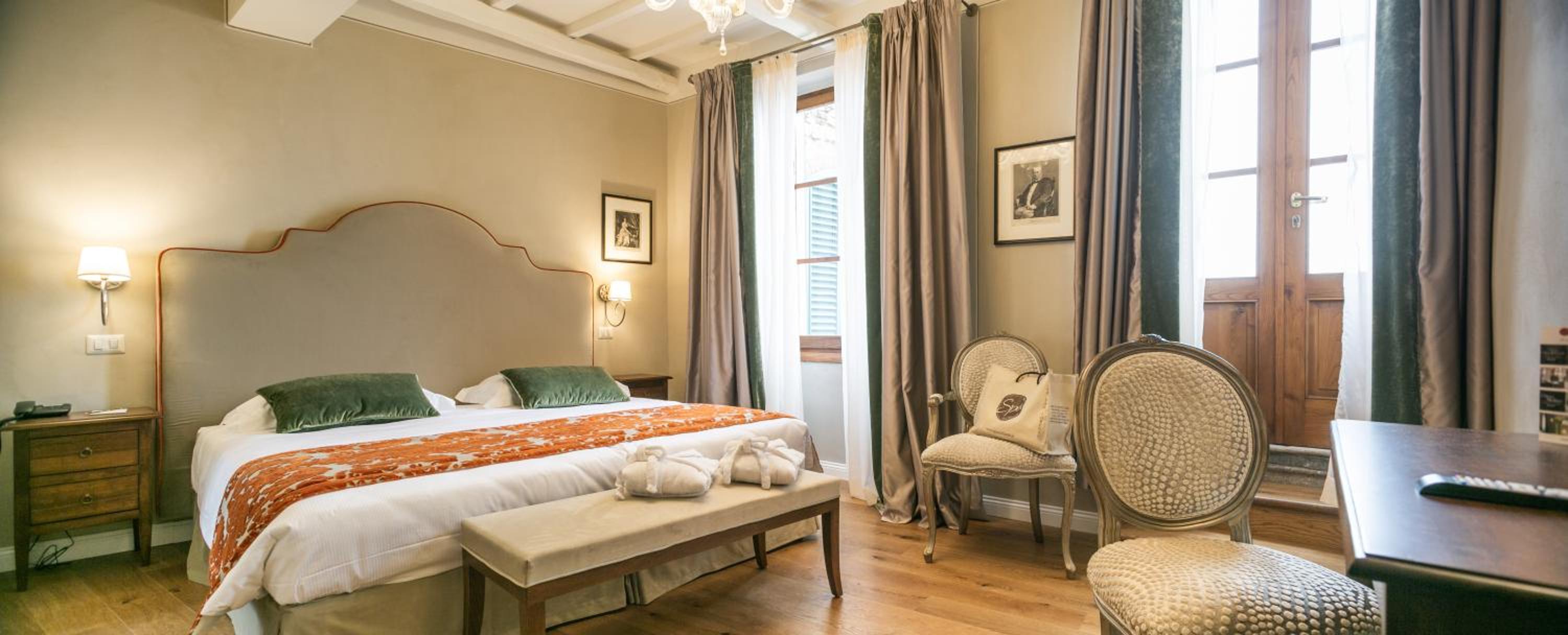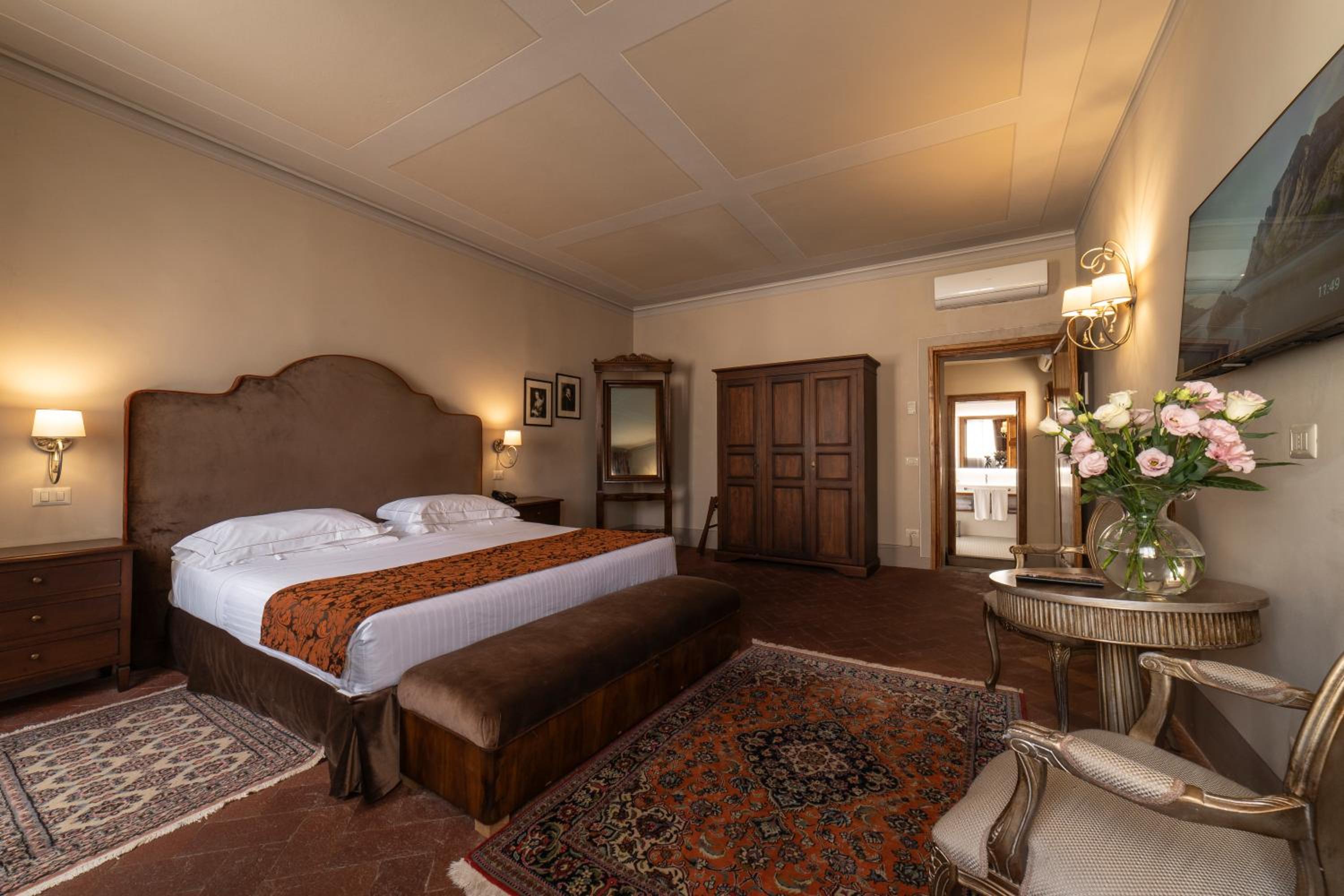 Palazzo Leopoldo, a majestic property blending a patrician villa from 1310 with a historical building, offers a unique stay in the medieval center of Radda. The large rooms, including junior suites and spacious suites, boast original fireplaces, frescoes, and modern amenities like a 32-inch LCD TV.