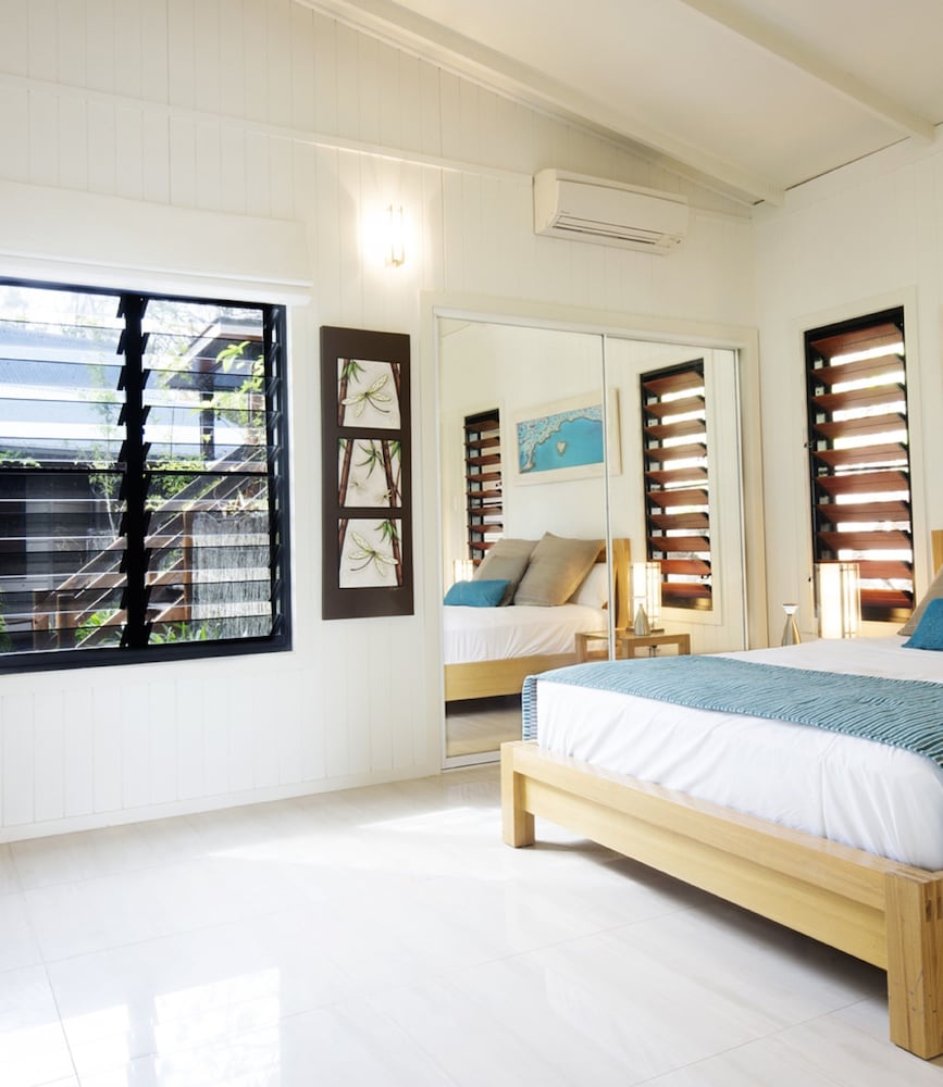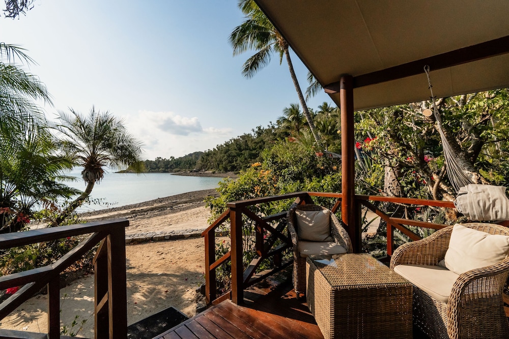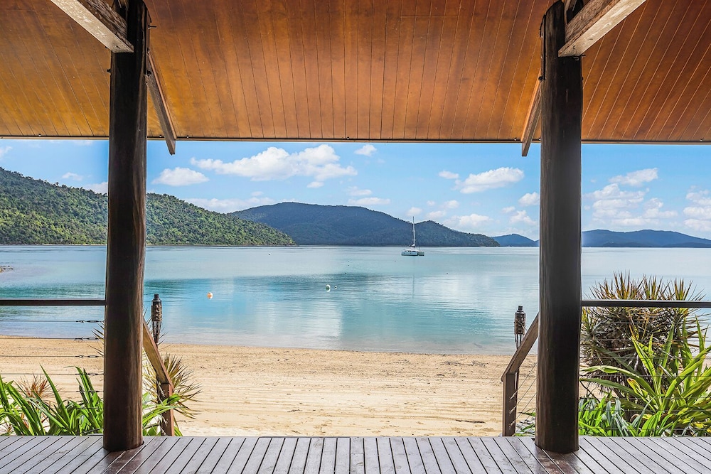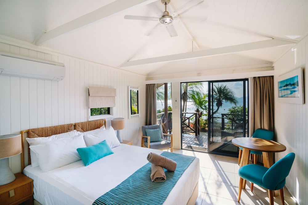 The spacious Balinese-inspired villas at Palm Bay Resort are a true testament to the harmony between architecture and nature. Each villa exudes an air of exotic luxury, with open spaces that seamlessly blend indoor and outdoor living. From your villa, you’ll be treated to extensive views of the mesmerizing Whitsunday Passage and the boundless Coral Sea, creating a captivating canvas for your love story.