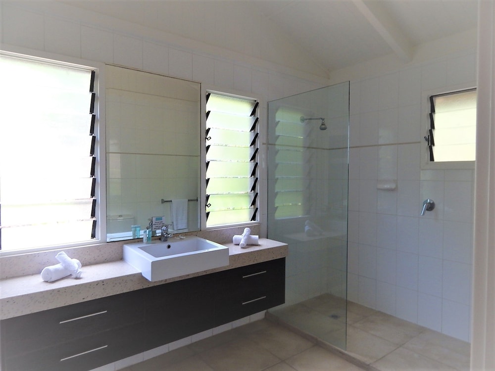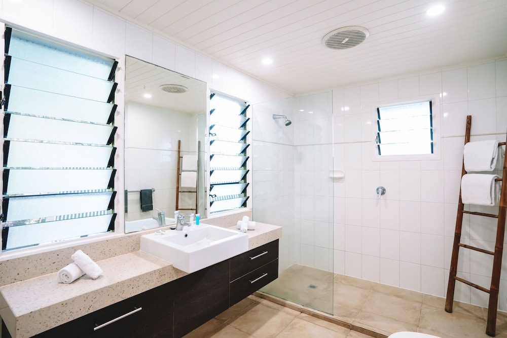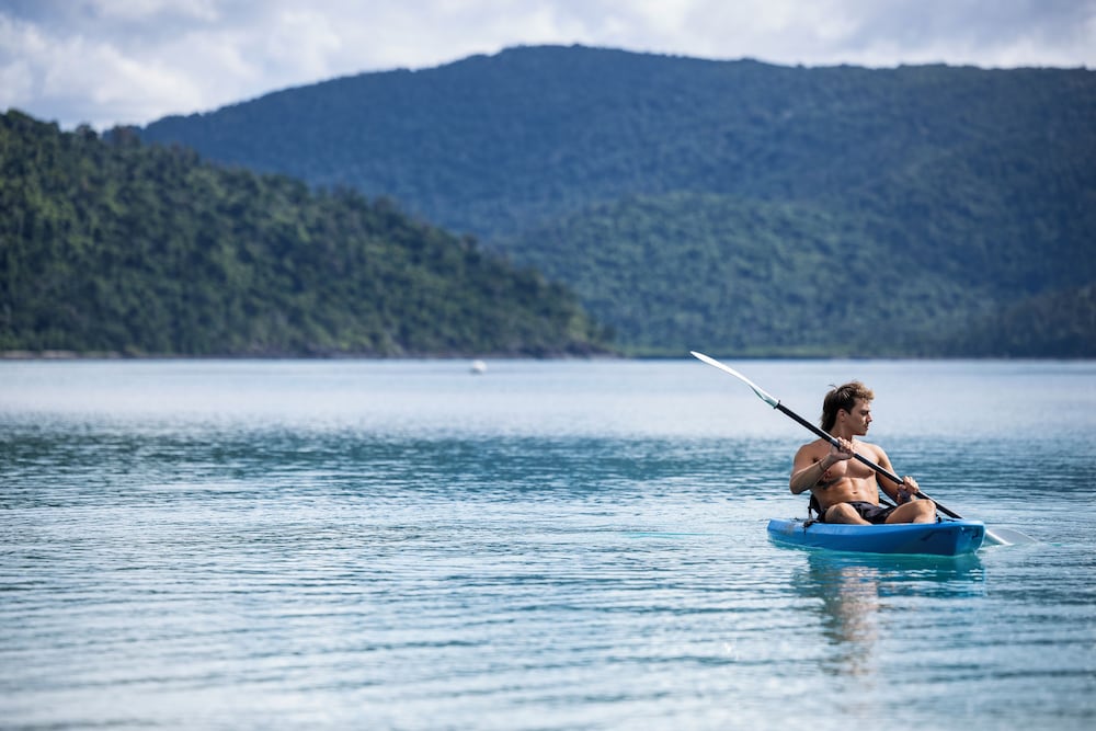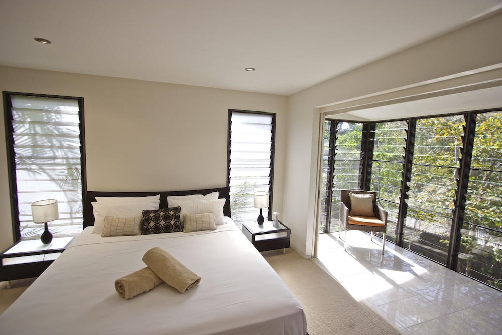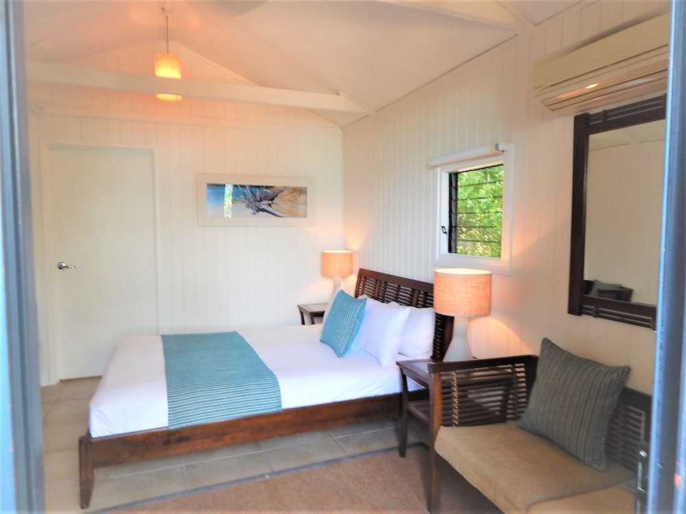 The spacious Balinese-inspired villas at Palm Bay Resort are a true testament to the harmony between architecture and nature. Each villa exudes an air of exotic luxury, with open spaces that seamlessly blend indoor and outdoor living. From your villa, you’ll be treated to extensive views of the mesmerizing Whitsunday Passage and the boundless Coral Sea, creating a captivating canvas for your love story.