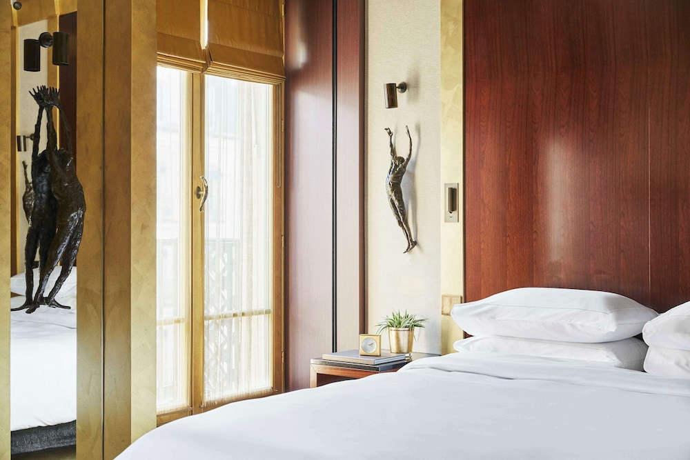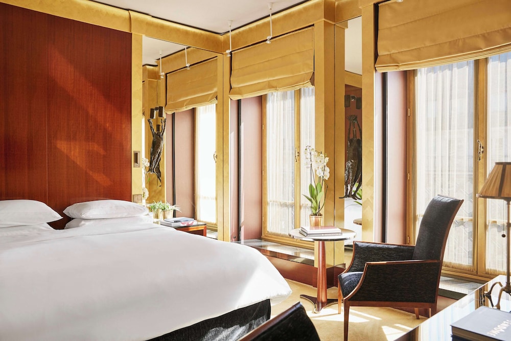 The Park Hyatt Paris-Vendôme offers swanky rooms that effortlessly blend the glimmer of brass with the warmth of wood interiors. Each room is furnished with a flat-screen TV, a Nespresso coffeemaker, and complimentary Wi-Fi. The luxurious limestone bathrooms are accentuated with heated floors and invigorating rainfall showerheads, perfect for relaxation after a day of exploring the city. For those seeking something extra special, the hotel’s lavish suites boast unique features like fireplaces, balconies, kitchenettes, and even whirlpool tubs. And of course, room service is available to cater to your every whim.