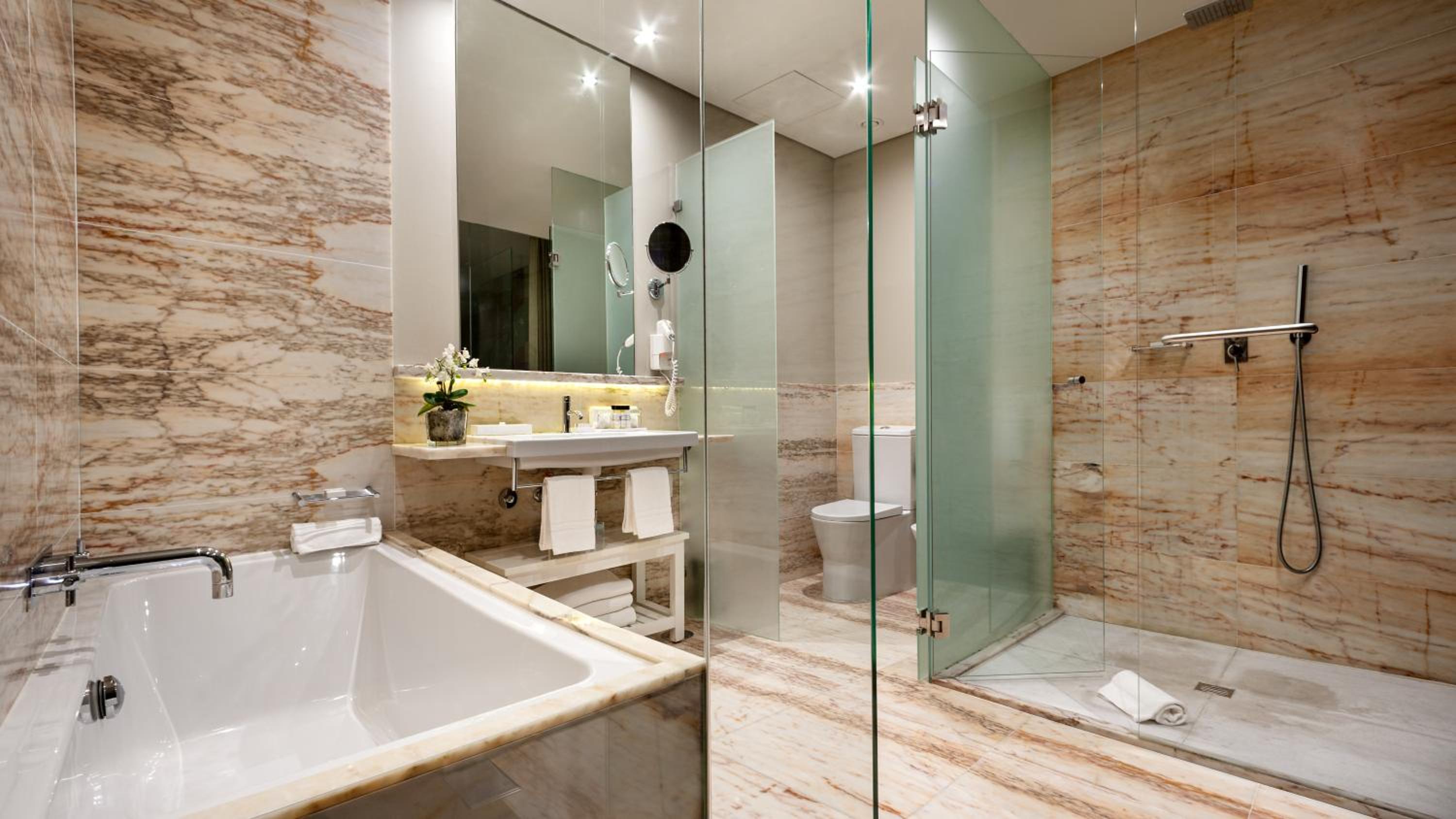 Elegant Rooms: Indulge in comfort with double-glazed windows, flat-screen TVs, and spacious bathrooms. Upgrade to rooms with a relaxing bathtub for added luxury.