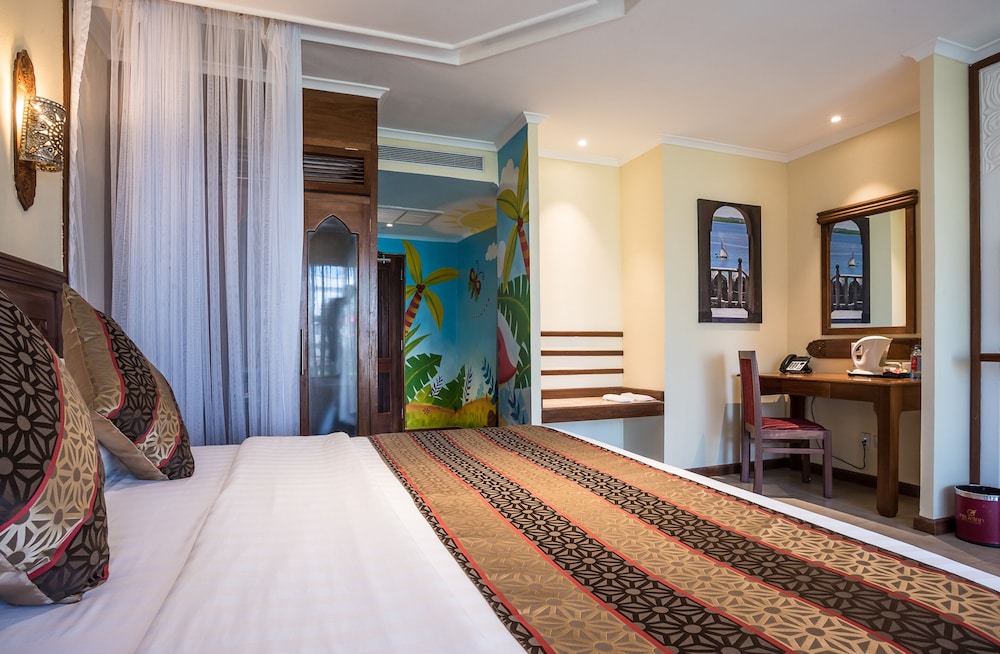 PrideInn Paradise is more than just a resort; it’s a coastal gem, renowned as a pioneer in the region, boasting an array of offerings that surpass expectations. Situated just 20 kilometers away from the vibrant city of Mombasa, this expansive 17-acre paradise is enveloped in meticulously manicured gardens and boasts a semi-private pristine white beach that stretches out to embrace the Indian Ocean. The moment you set foot here, you are transported to a world of serenity and beauty, creating the perfect setting for a romantic honeymoon.