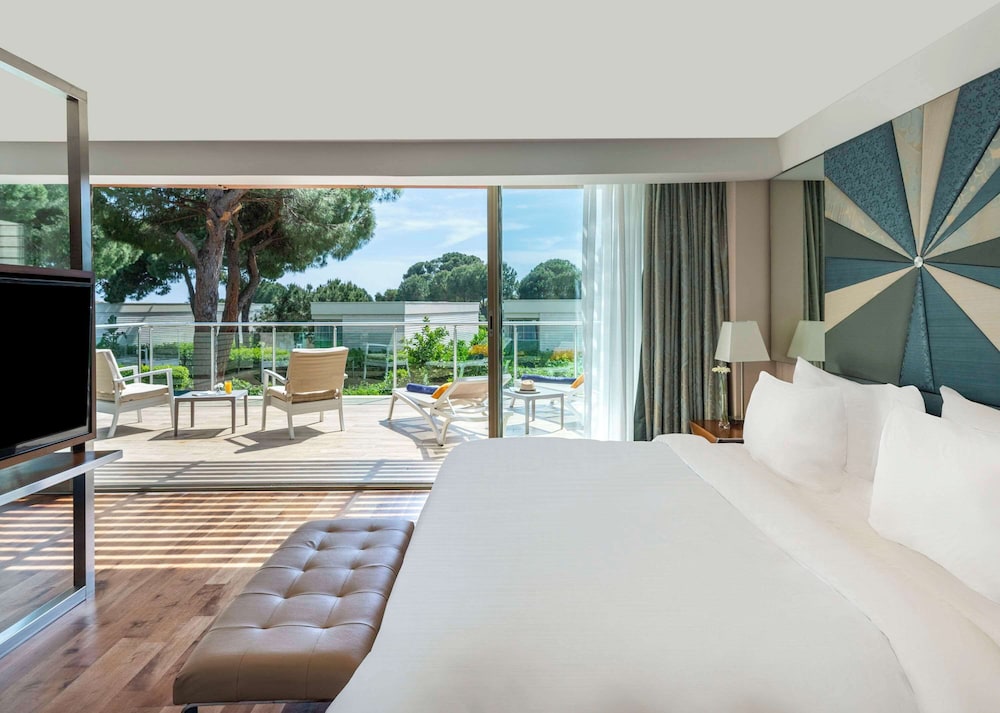 Rixos Premium Belek, nestled in the heart of the beautiful Belek region in Turkey, is an idyllic haven for honeymooners. This luxurious resort spans a vast 405,000 m² of Calabrian Pine and pistachio tree forests, and boasts a pristine kilometer-long sandy beach that extends a hundred meters inland, providing an exclusive and breathtaking backdrop for your romantic escape.