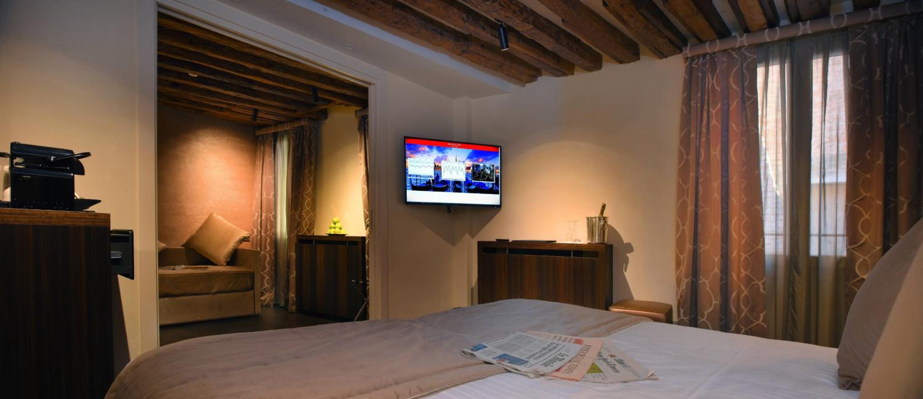 The hotel’s rooms are thoughtfully designed with various-sized wardrobes, ensuring that you have ample space to store your belongings. You’ll find doors and walk-in wardrobes, offering flexibility to cater to your specific needs. After a long day of exploring the winding streets and captivating sights of Venice, you’ll find solace in the pocketed coil spring mattresses with rigid base support, guaranteeing you a night of restful sleep and maximum comfort.