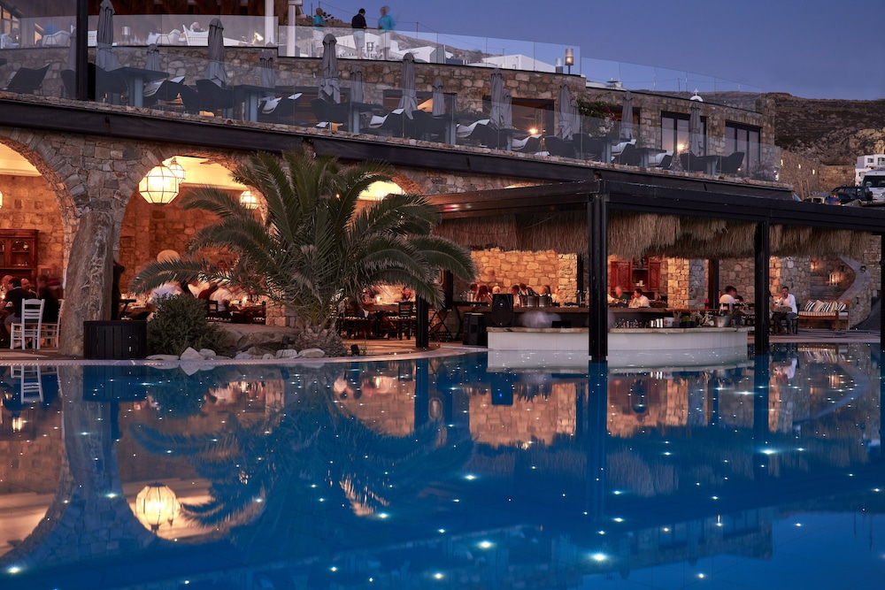 The resort is home to two upscale restaurants and two bars, ensuring a variety of dining and drinking options. While in Elia, be sure to explore the local Mediterranean cuisine at nearby restaurants such as Elia Beach Restaurant, Utopia restaurant, and Cabbanes Restaurant Mykonian Villa Collection. All are within a short distance from the resort, making it easy to enjoy the best of the local culinary scene.