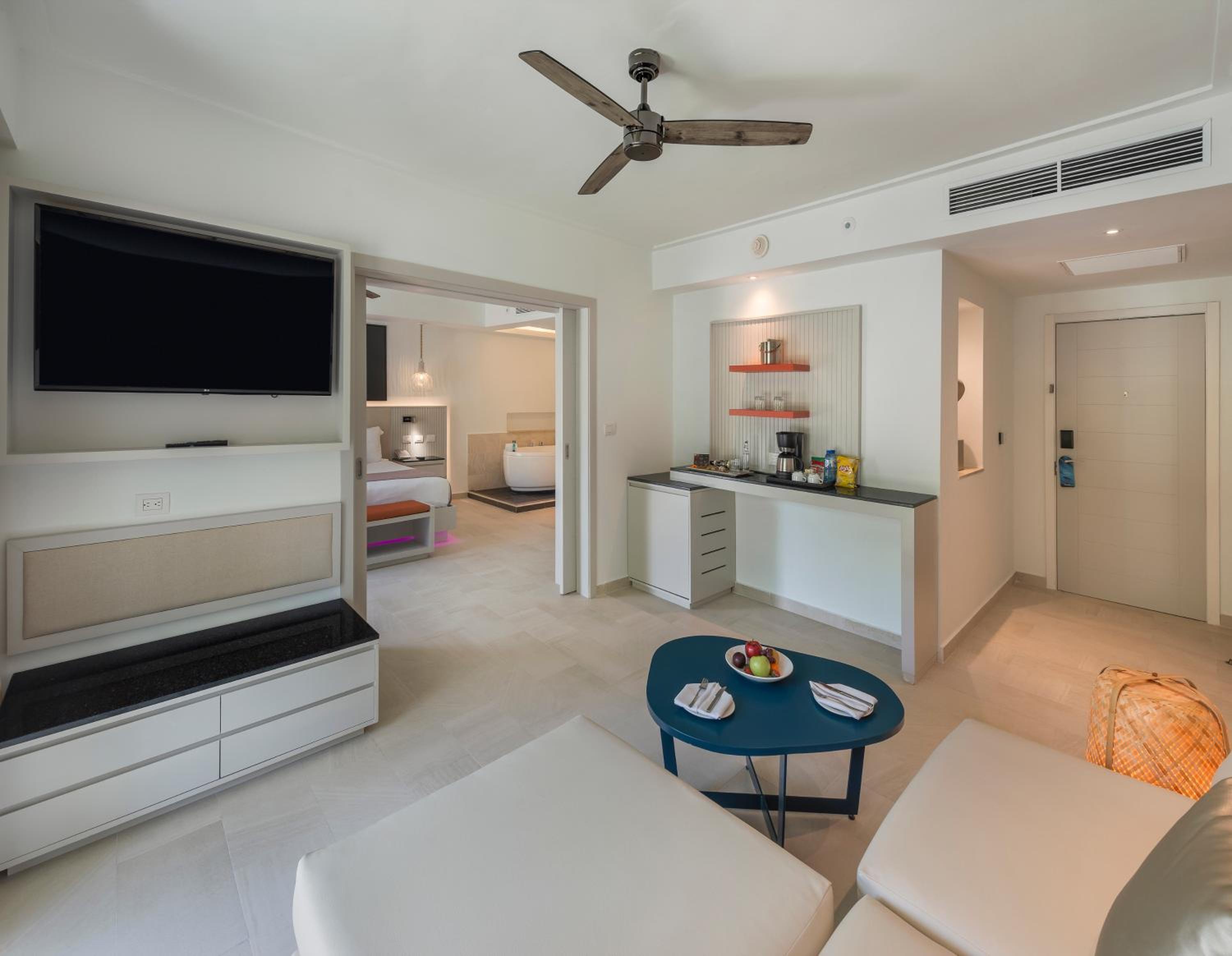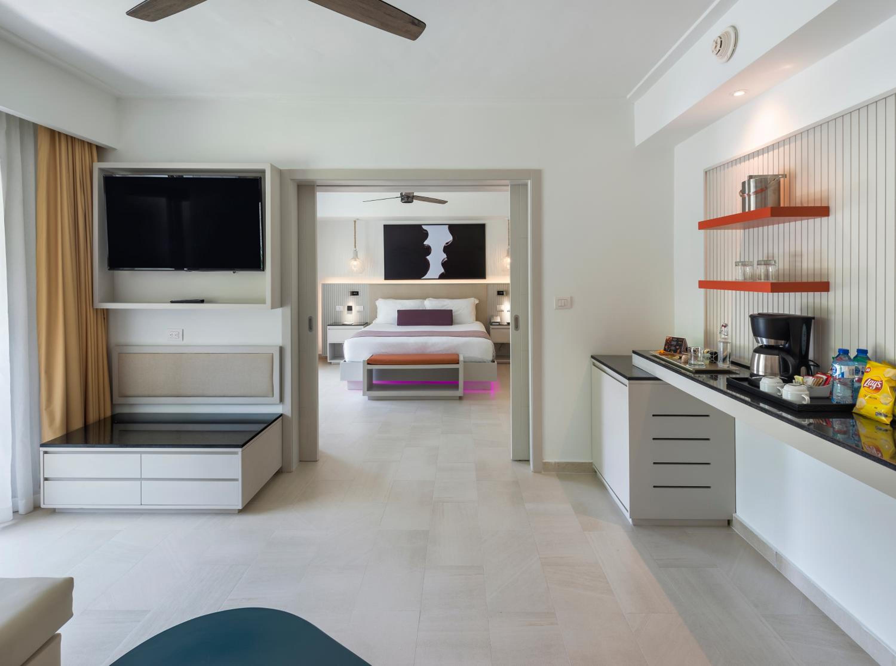 Each room at Royalton CHIC Punta Cana exudes elegance. The airy, contemporary rooms are equipped with modern amenities including free Wi-Fi, cable TV, minibars, and coffeemakers. Every room opens out onto a terrace that offers breathtaking views of the lush gardens. And to truly indulge, room service is available around the clock.
