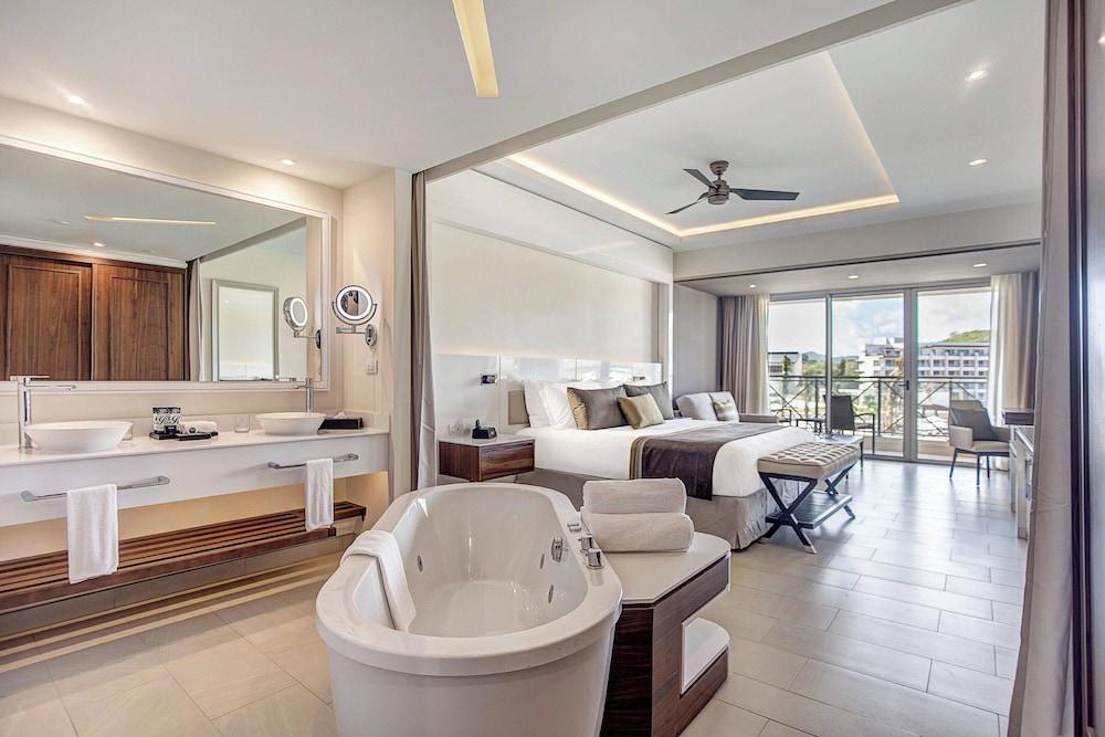 Every room at the Royalton Saint Lucia Resort is a statement of sophistication. With complimentary Wi-Fi, satellite TV, minibars, and balconies or terraces, the rooms are designed for comfort. Select rooms offer awe-inspiring sea views, while the suites elevate the experience with separate living rooms furnished with sofabeds and/or whirlpool tubs. The upgraded suites further enhance the charm with terraces boasting hot tubs. The luxury of 24/7 room service is also at your disposal.