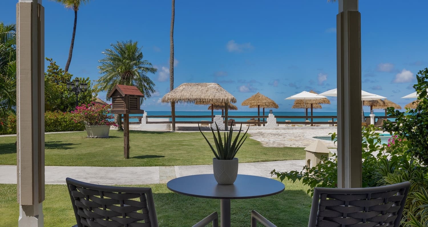 The Mediterranean Club Level Suite is our pick for a cozy suite with a private patio or balcony. With views of the resort’s beautifully landscaped gardens, honeymooners can relax in their spacious bedroom, which features a four-poster, king-size bed, flat screen TV, and en-suite bathroom complete with a whirlpool tub and separate walk-in shower. Guests can also enjoy Club Sandals concierge service, including assistance with reservations and preferred check-in.
