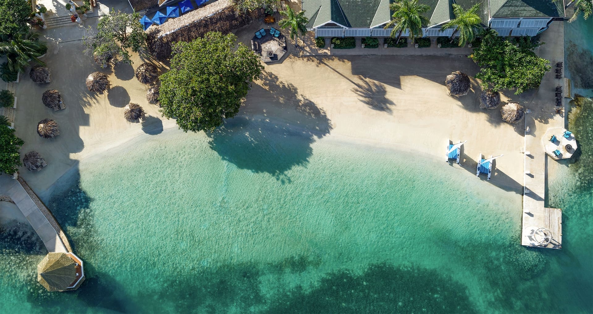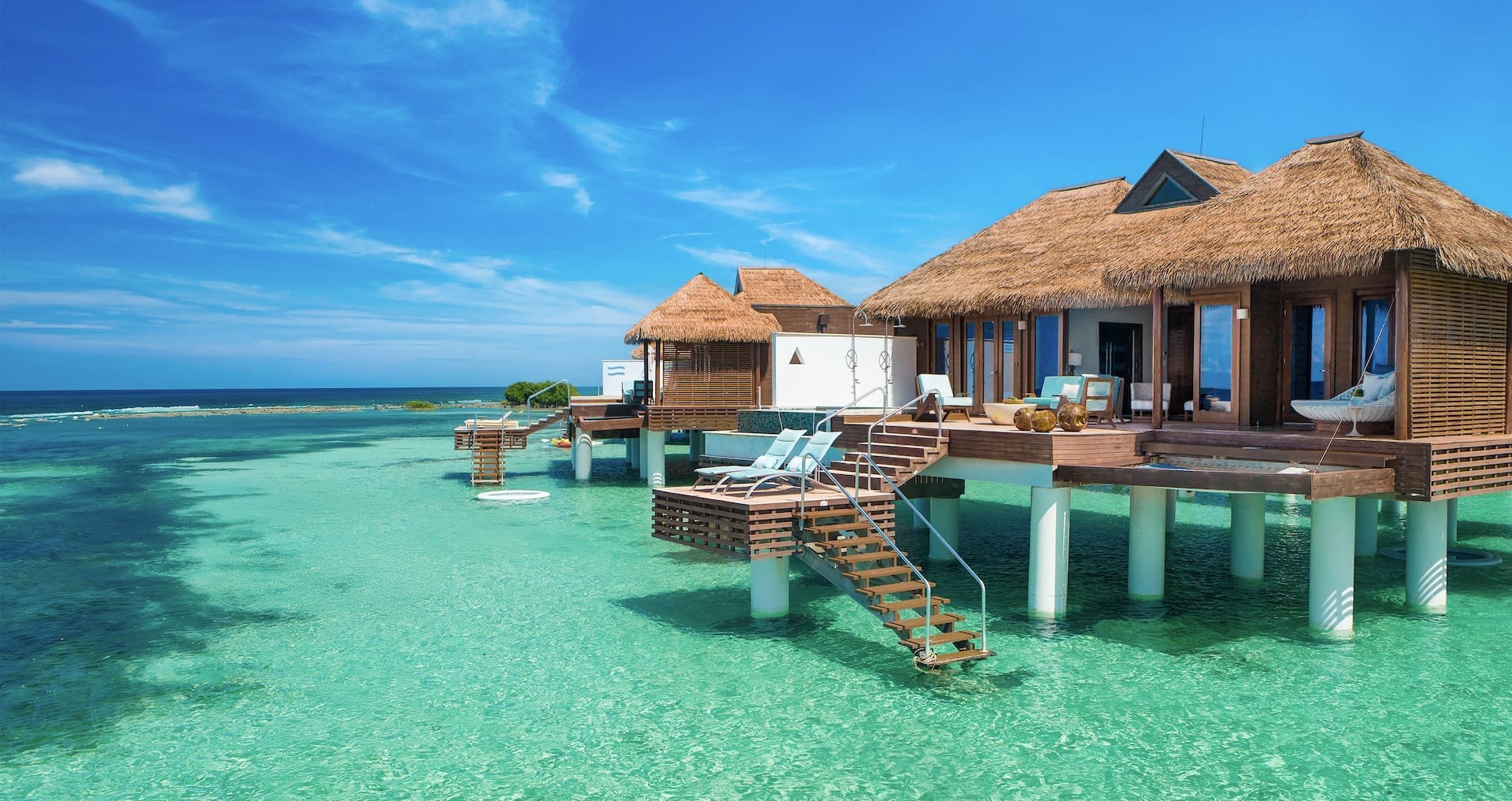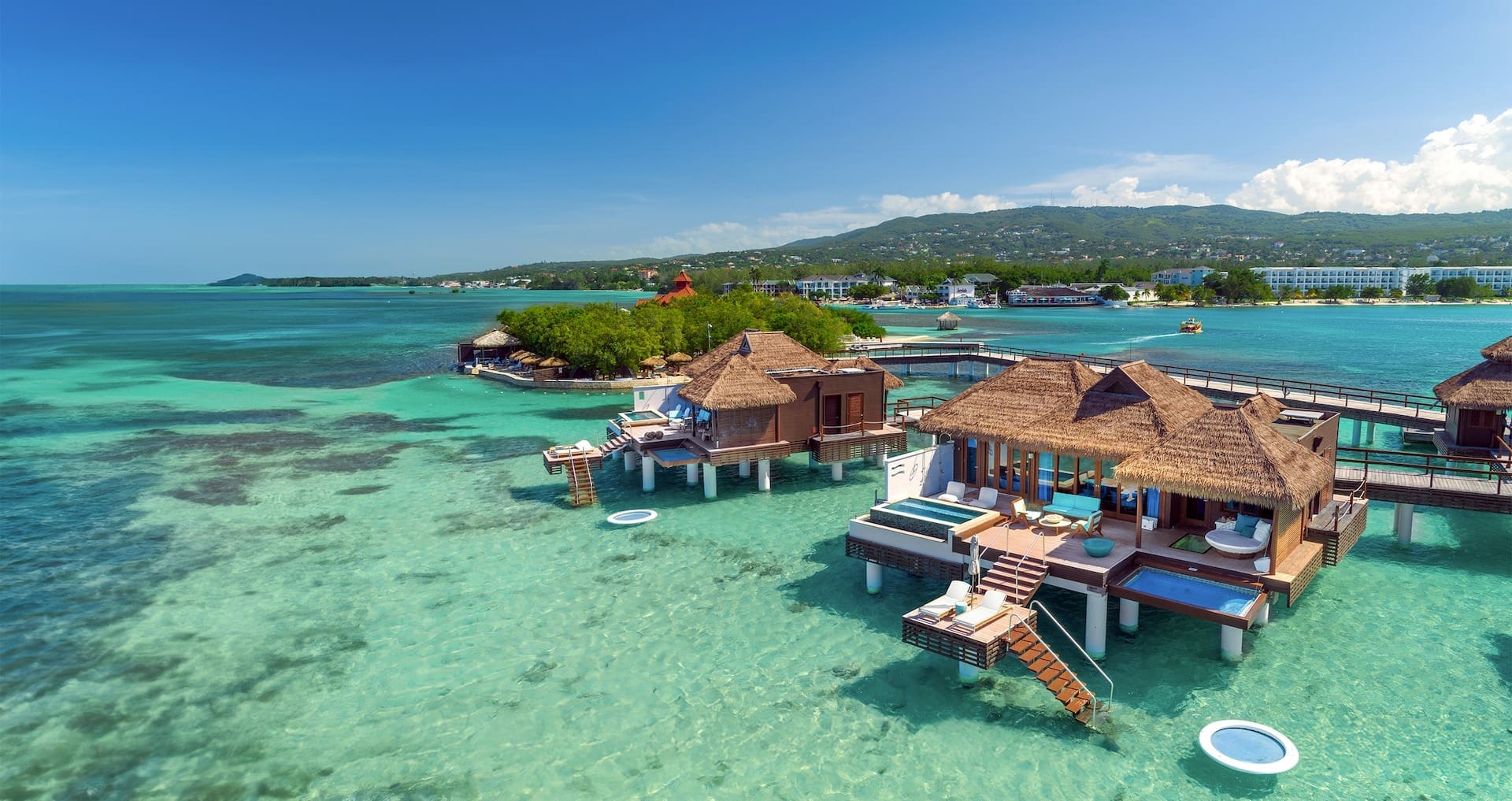The Sandals Royal Caribbean Resort offers the first over-the-water bungalows in the Caribbean Sea. If you choose to stay in an Over-the-Water Private Island Butler Honeymoon Bungalow, located just off the resort’s private island, you can enjoy views of marine life from the comfort of your suite, outdoor Tranquility Soaking Tub for two, or from an over-water hammock.