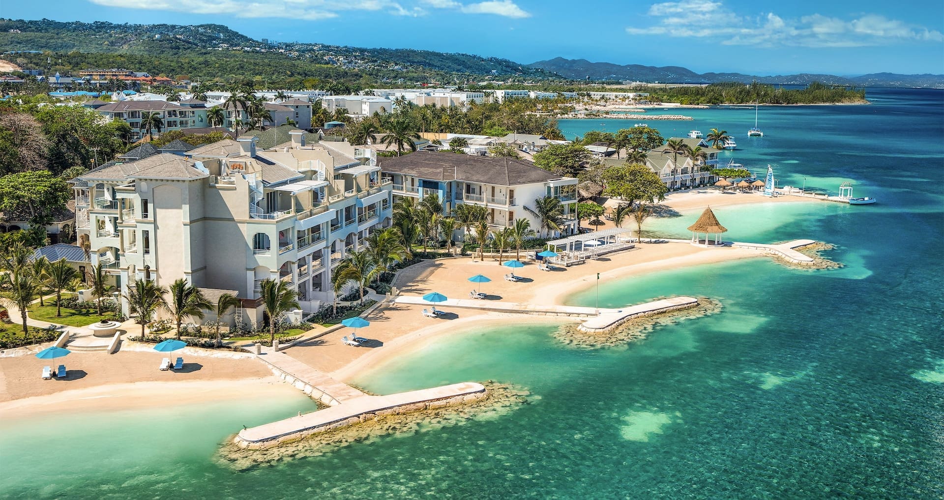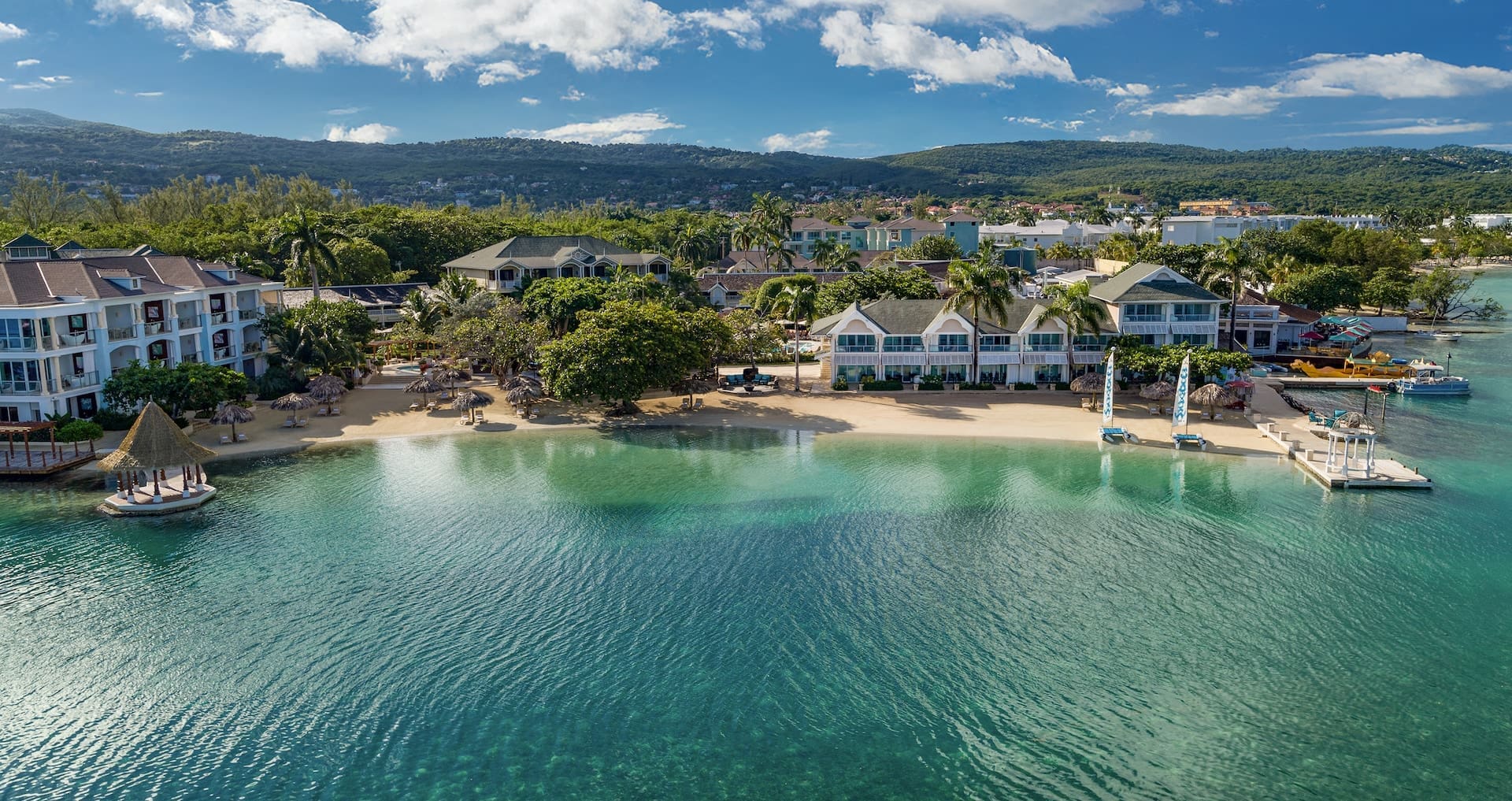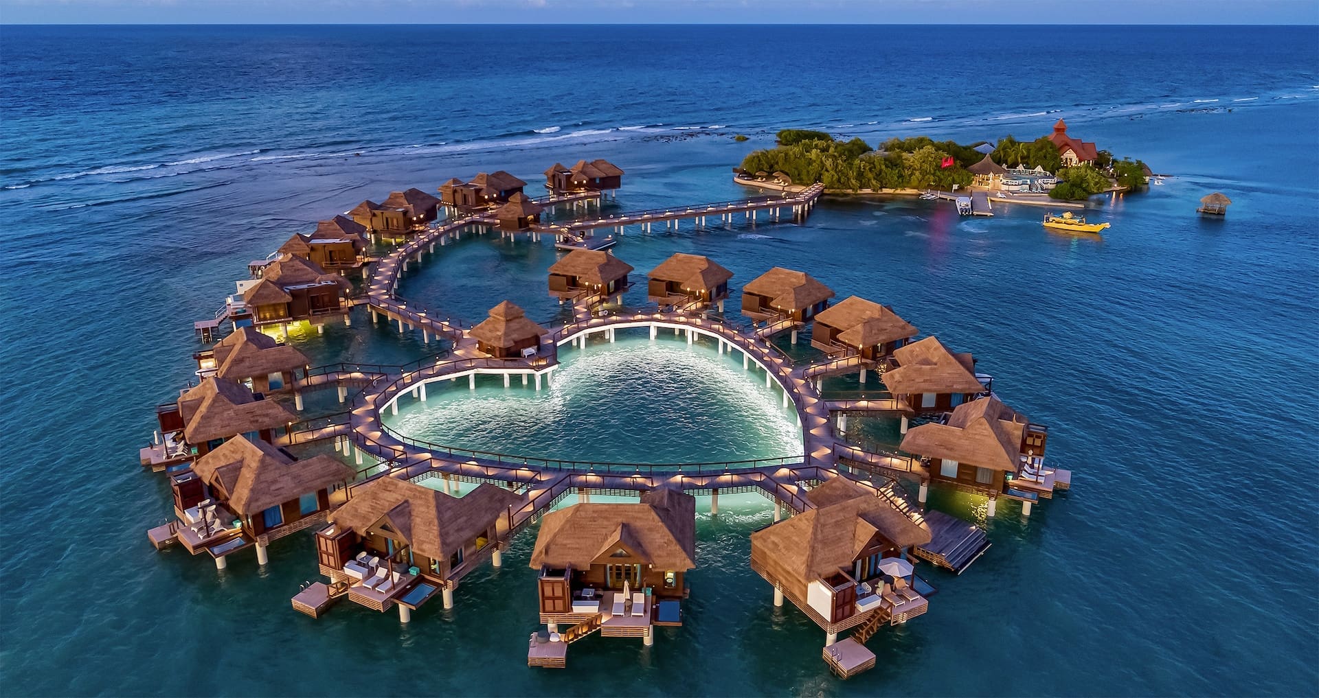 This all-inclusive honeymoon resort also has a private off-shore island located just two minutes away by boat from the Sandals Royal Caribbean. Here you’ll find a secluded beach with private cabanas, swim-up pool bar, and authentic Thai cuisine at the island’s Royal Thai restaurant.