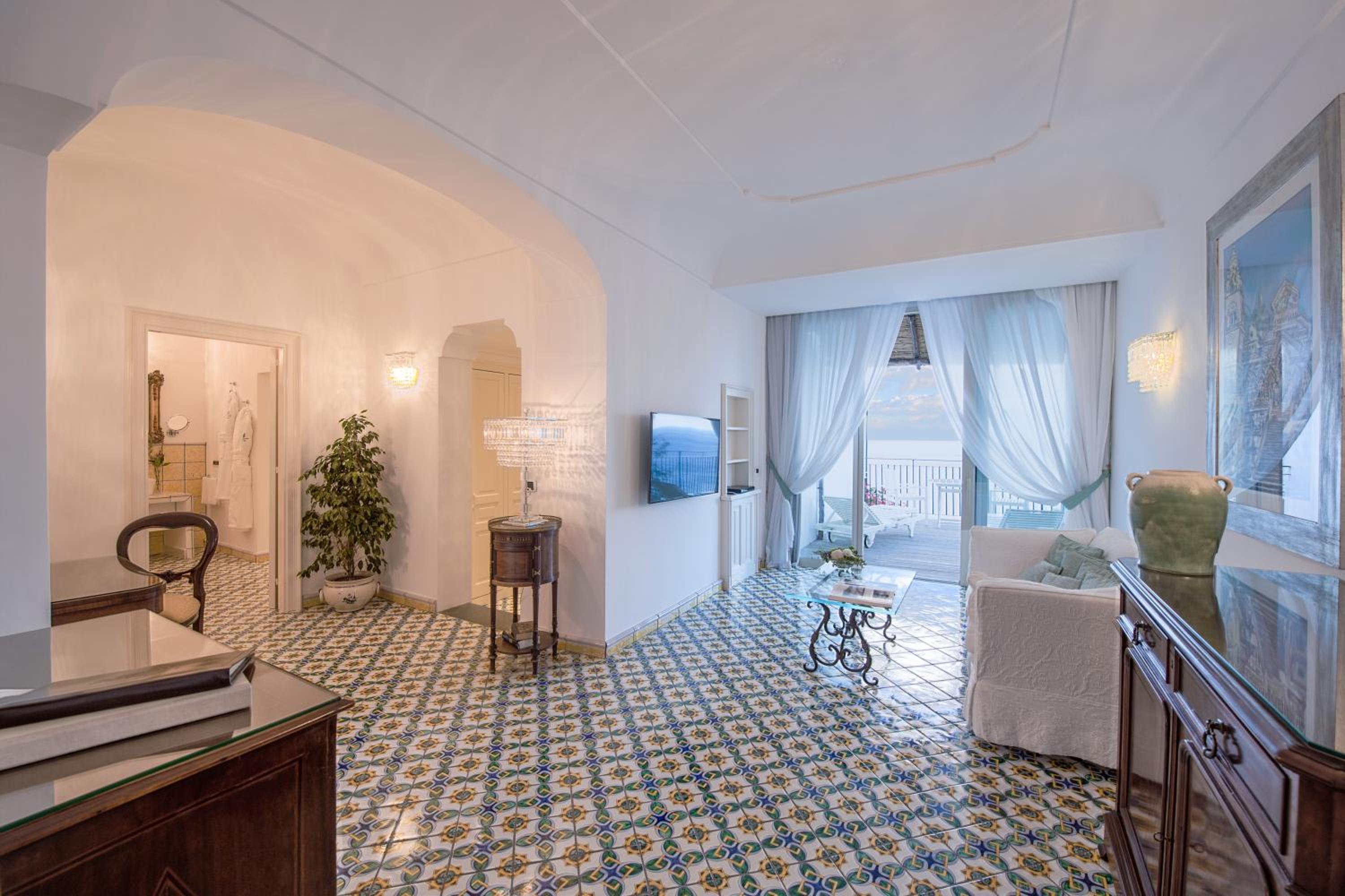 Indulge in Michelin-starred dining at Restaurant Glicine or savor fresh seafood at Restaurant Al Mare, both offering scenic terrace dining. The elegant rooms and suites with Vietri majolica floors and balconies with sea views provide a luxurious retreat.