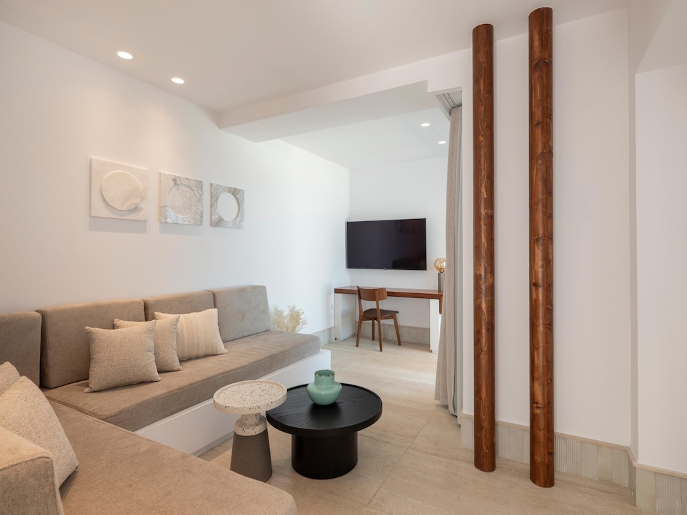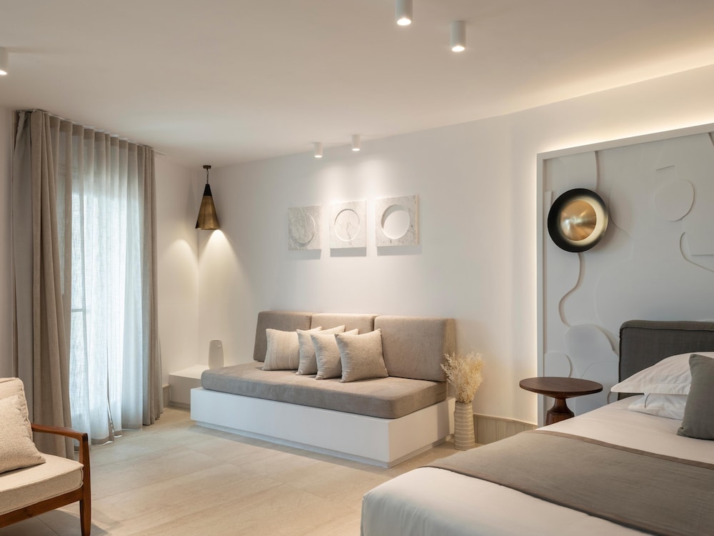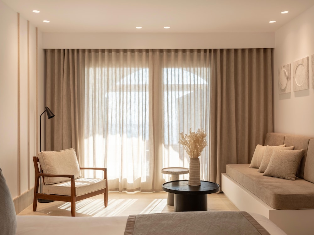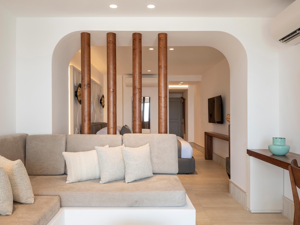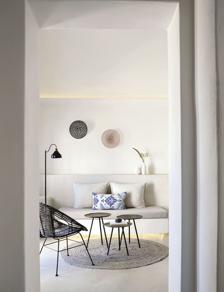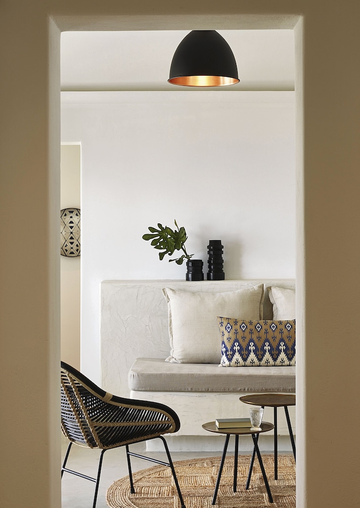 The hotel architecture is a harmonious blend of traditional Cycladic style with contemporary elegance. The soothing tones of lava-black and white accentuate the serene ambiance, while the 85 spacious white-washed suites and villas offer the epitome of laid-back luxury accommodation. Santo Pure is a haven designed for tranquil vacations and warm hospitality.