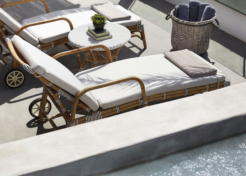 Located on the picturesque outskirts of Oia village, Santo Pure Oia Suites & Villas overlooks the unending beauty of the Aegean Sea and the captivating spectacle of Santorini’s unique sunsets. The property is spread across six expansive neighborhoods, each one a serene enclave nestled amidst lush Mediterranean gardens and centered around six luxurious pools. It’s a setting that embodies the pure essence of a typical Santorinian village.