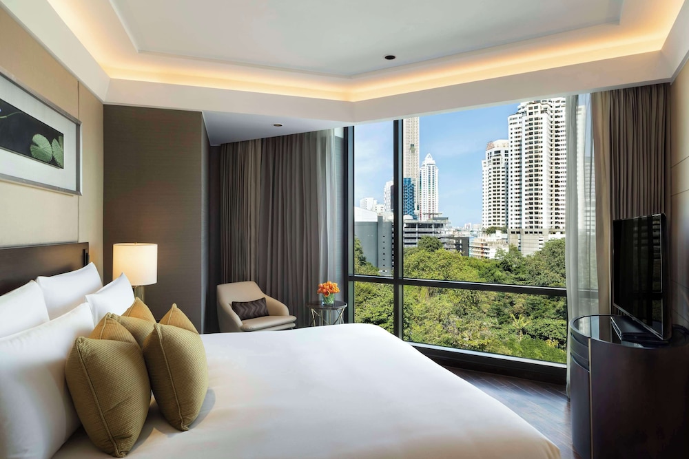 As you step into this luxurious city-resort, you’re greeted by the promise of a serene escape within the heart of Bangkok. The hotel, with its 397 rooms and lavish suites, is thoughtfully designed to be a sanctuary for couples embarking on the journey of a lifetime.