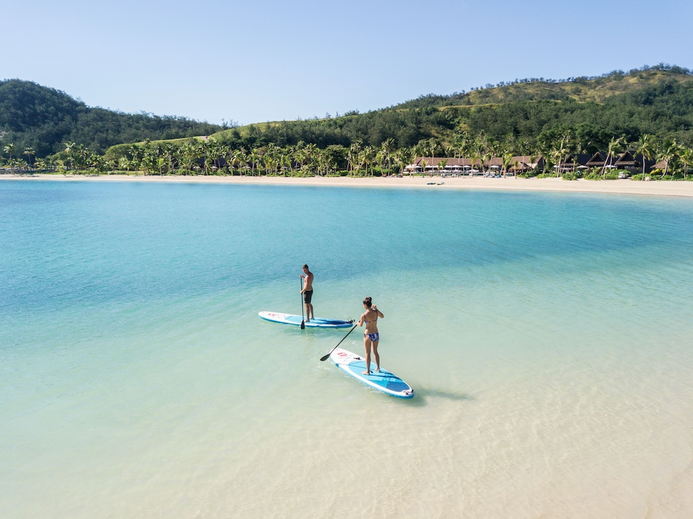 Indulgence extends to culinary delights, with three onsite restaurants offering regional cuisine and poolside dining, allowing you to savor delectable flavors against a backdrop of paradise. The 24-hour gym and a range of activities such as beach volleyball, water skiing, and sailing cater to those seeking active pursuits, while the serene outdoor pool and children’s pool provide a haven of relaxation. Six Senses Fiji also champions eco-conscious luxury, with individually furnished rooms featuring private pools and eco-friendly amenities, allowing you to revel in the lap of luxury while respecting the beauty of the environment.