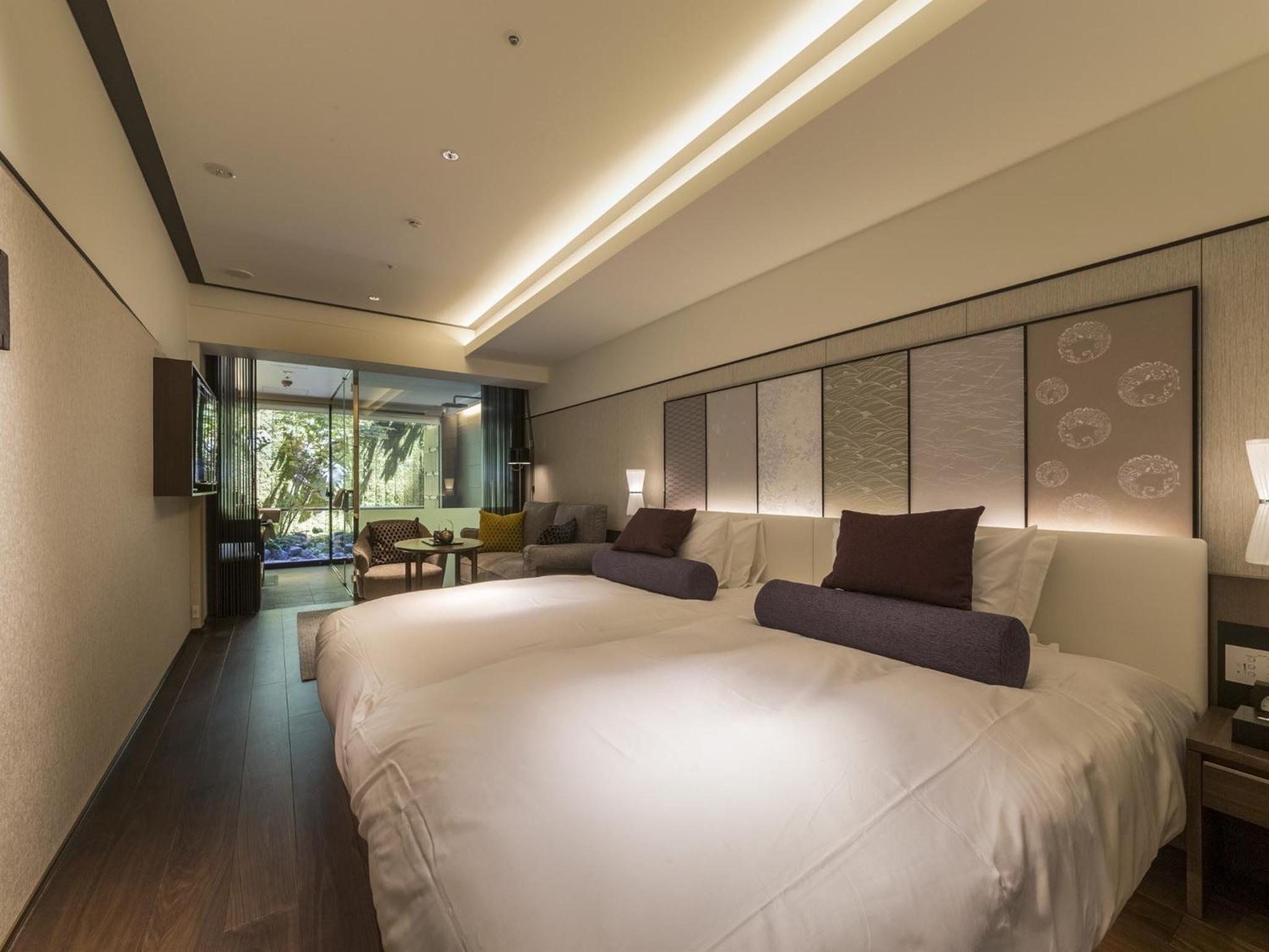 The hotel’s accommodations are designed to provide an unparalleled level of comfort and luxury. Each room is thoughtfully appointed with modern amenities, ensuring that your stay is nothing short of splendid. Some rooms even offer panoramic views of the Kamogawa, allowing you to wake up to the gentle sounds of the river and its tranquil ambiance. Additionally, select rooms provide a glimpse into a private courtyard, adding an extra layer of intimacy to your honeymoon retreat.