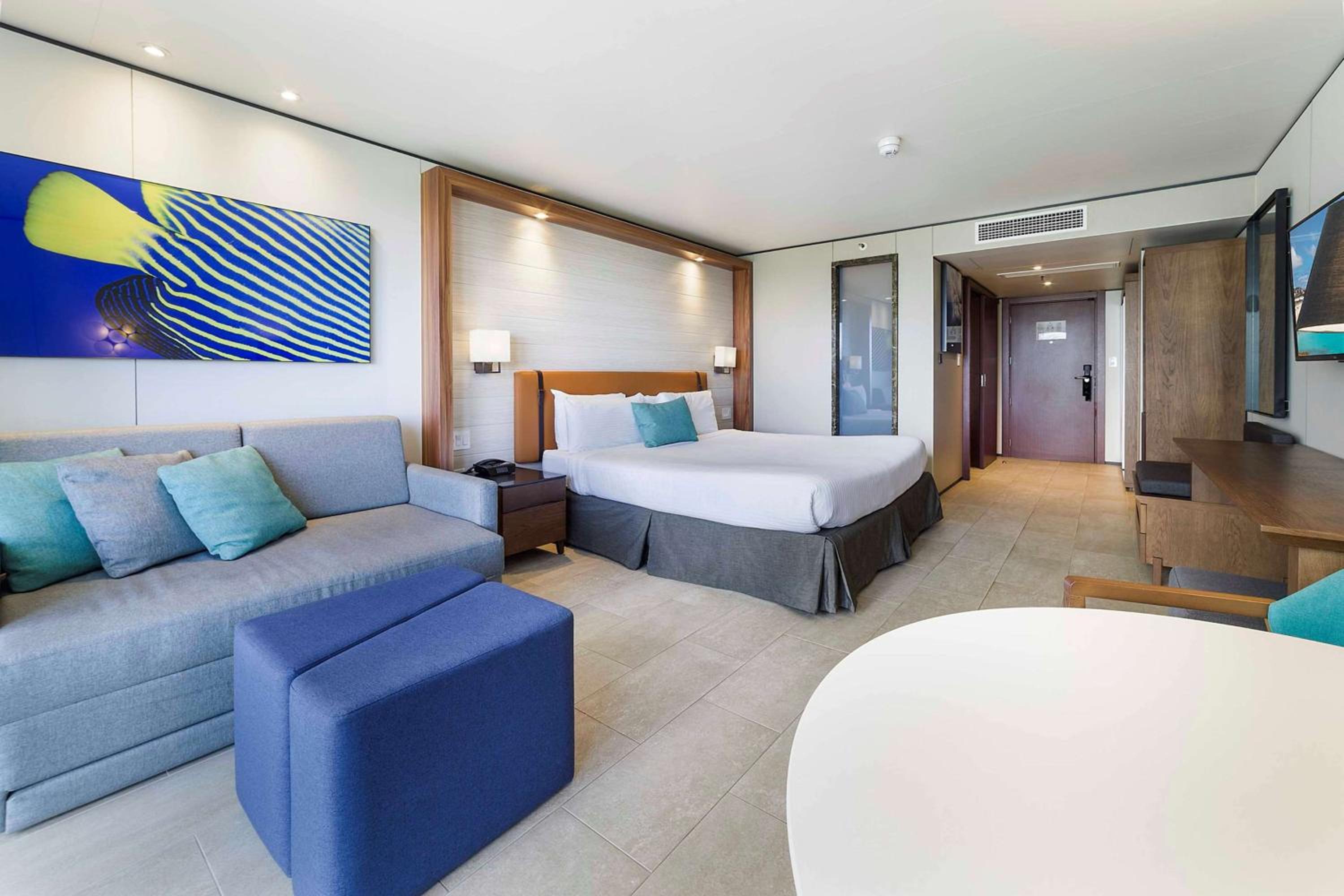 - Plush king or double-bedded options with a seating area