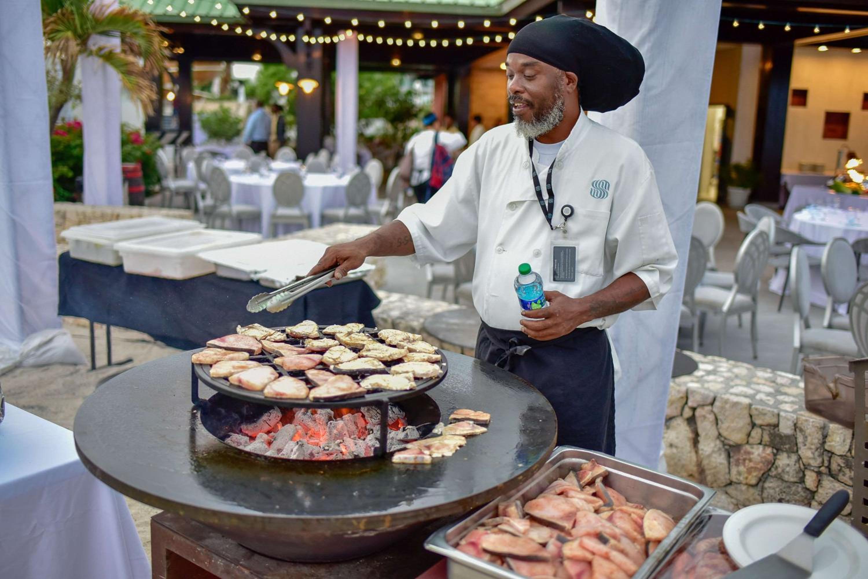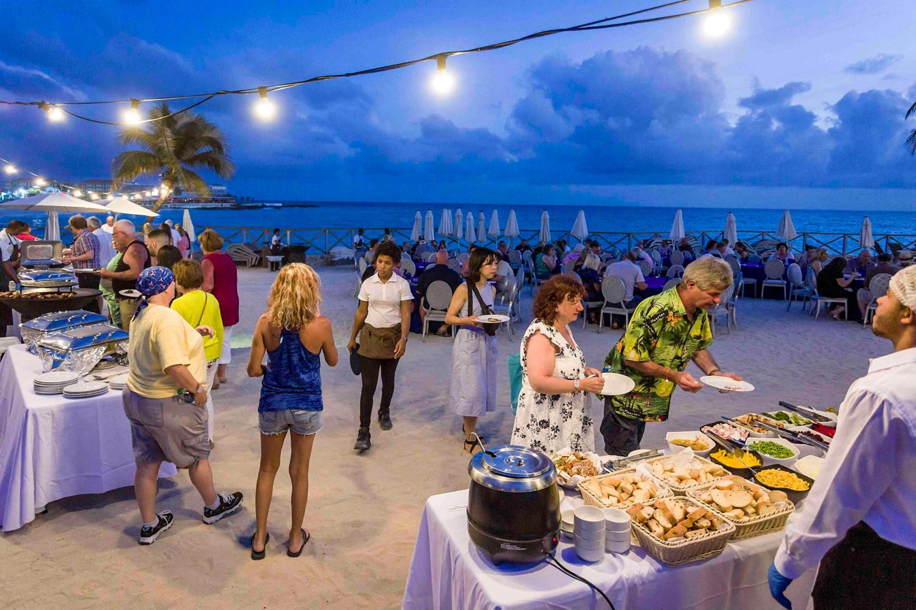 - The Palms Beach Grill, Restaurant + Bar – Beachfront venue for Caribbean specialties by lunch and the Lava Rock dining feature by evening where guests can cook their meals on individual hot slates.