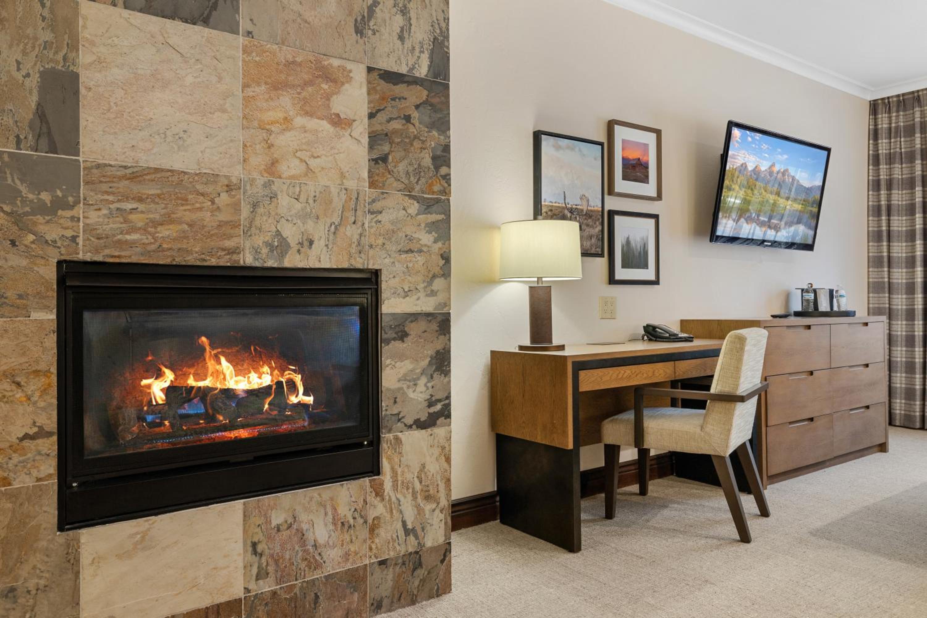 The hotel is centrally located, making it easy to explore nearby attractions such as Grand Teton and Yellowstone National Parks, Jackson Hole Mountain Resort, and the Snake River. A courtesy car (available from 7:30 am to 10:30 pm) and a free local town shuttle are at your disposal for quick trips into town, where you can indulge in dining and shopping.