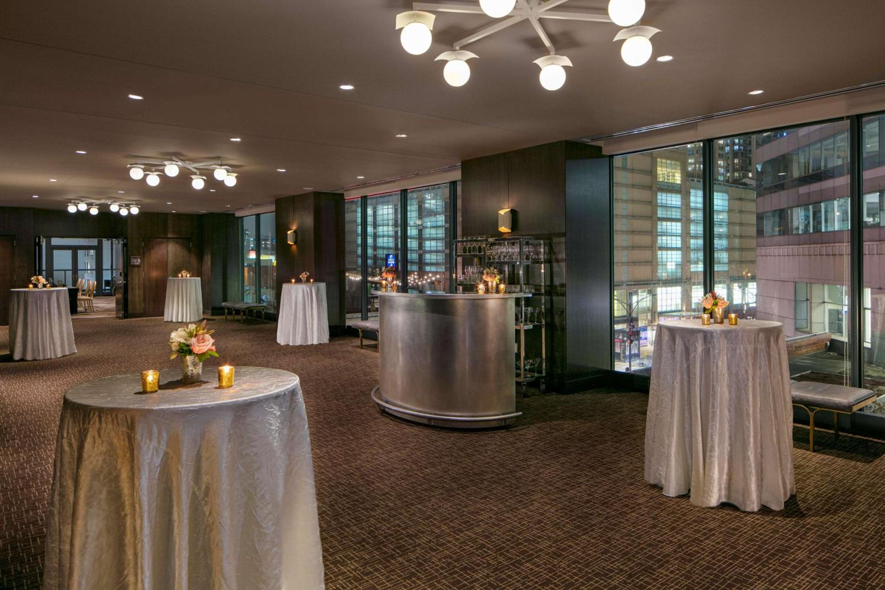 For those seeking an enchanting venue for special occasions, the Grand Ballroom is a highlight. With floor-to-ceiling windows offering panoramic downtown views and a private outdoor terrace, it’s an ideal setting for a romantic celebration or intimate gathering.