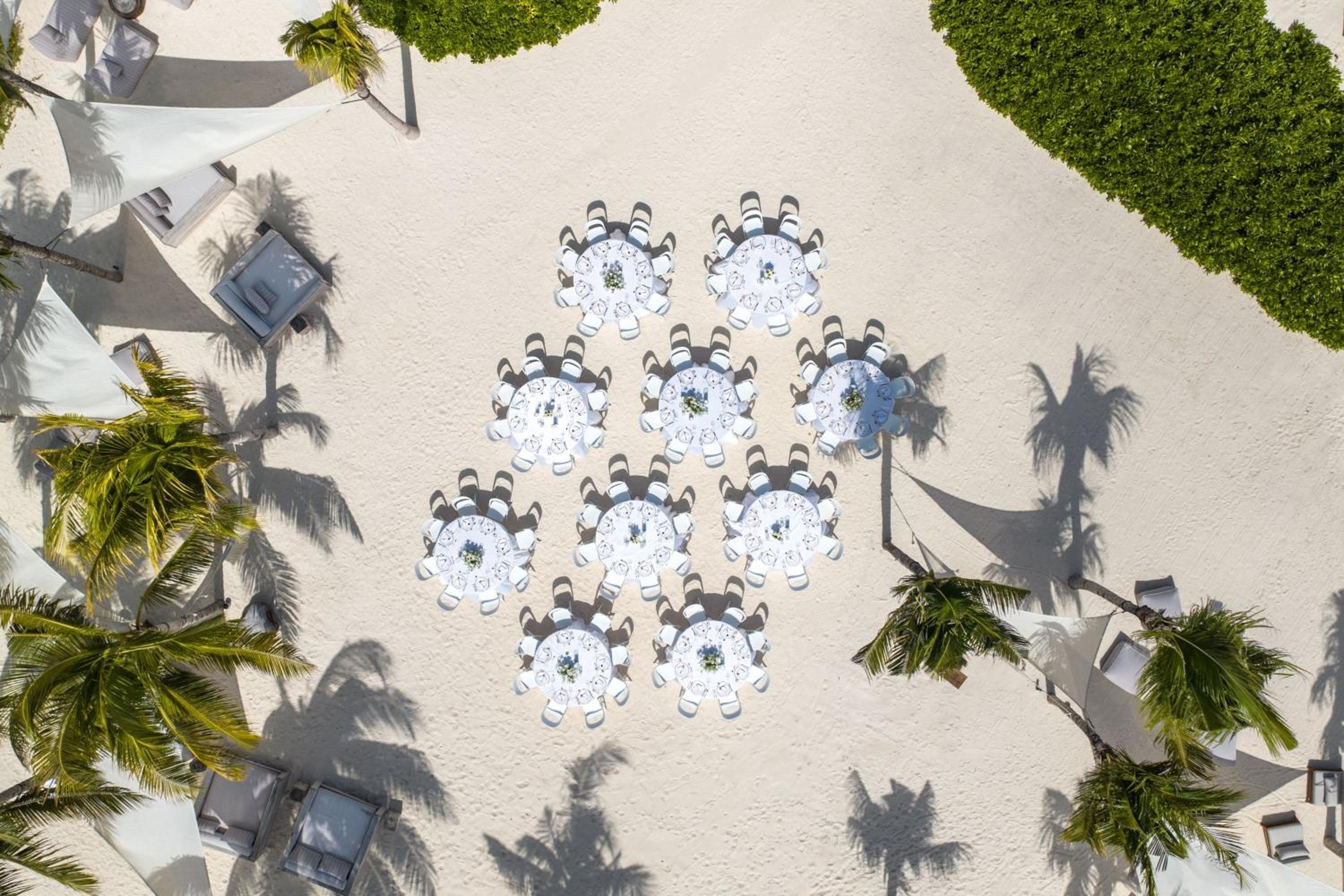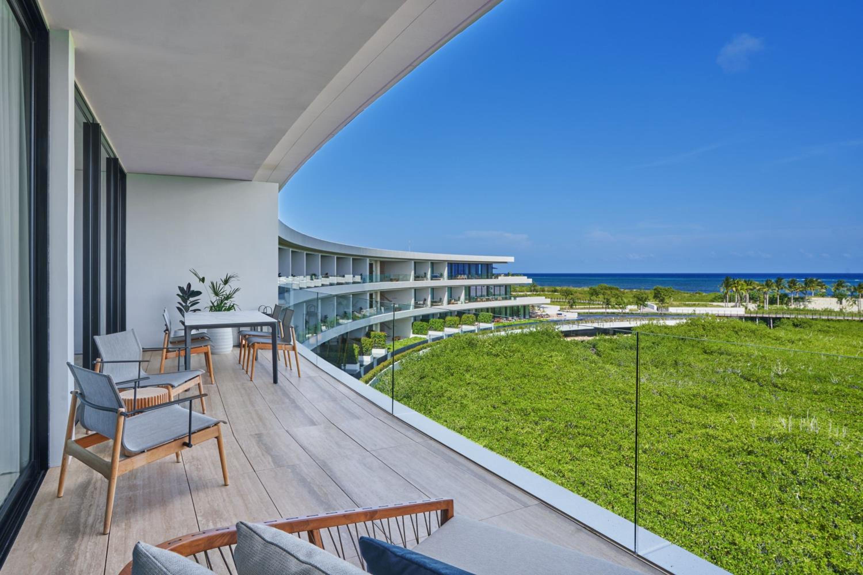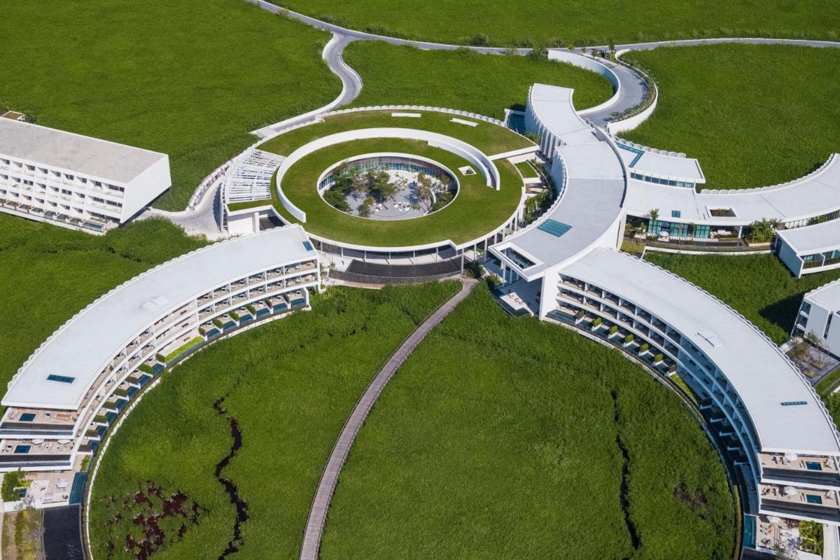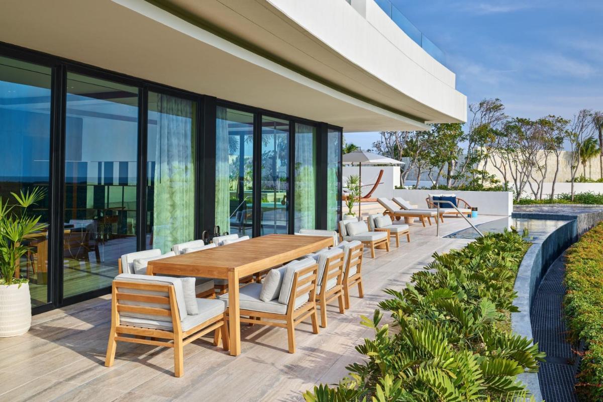 The St. Regis Kanai Resort stands out with its unique circular architecture, seemingly floating above the lush canopy of mangrove trees. This innovative design was inspired by the Pleiades constellation, a nod to the ancient Mayan astrological traditions. The resort’s finesse is not just limited to its exterior. Each room and suite of this resort is an embodiment of elegance, featuring private terraces or plunge pools, offering a private sanctuary for lovebirds.