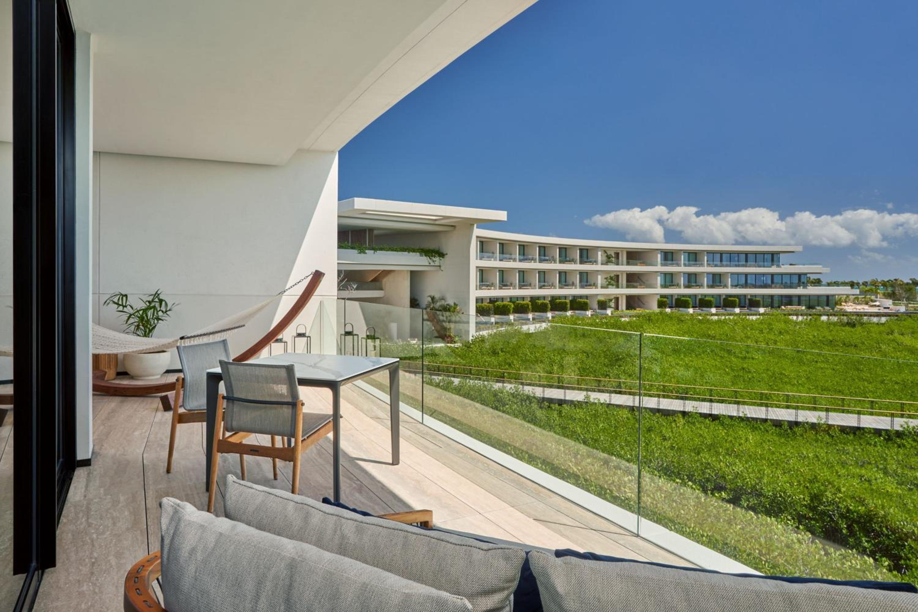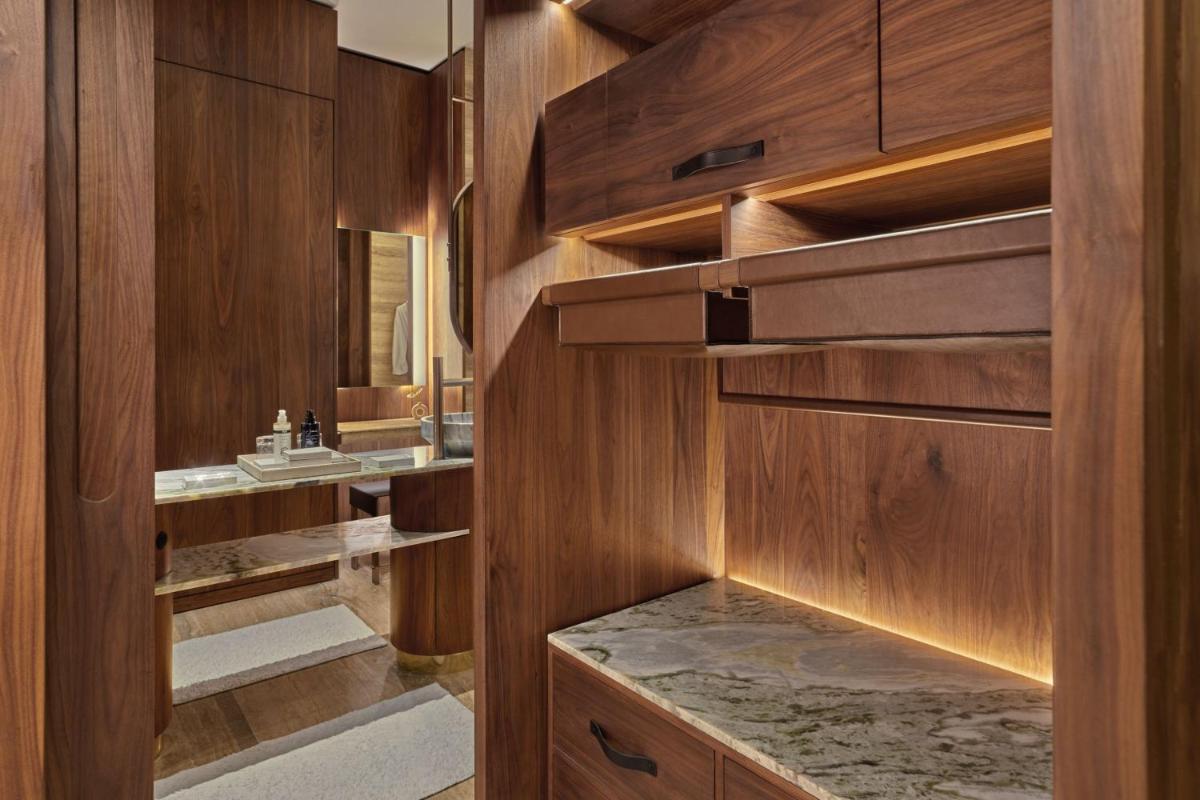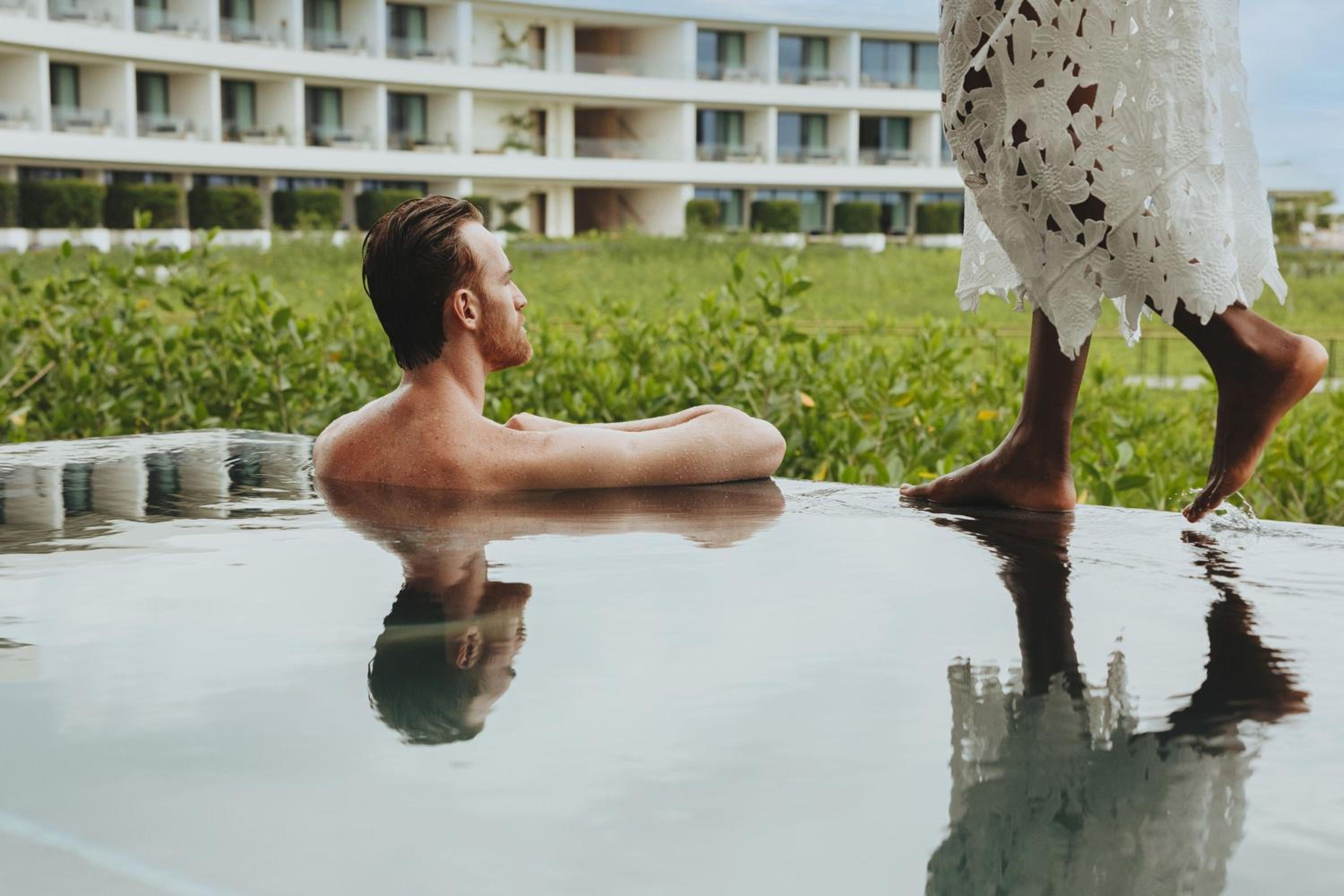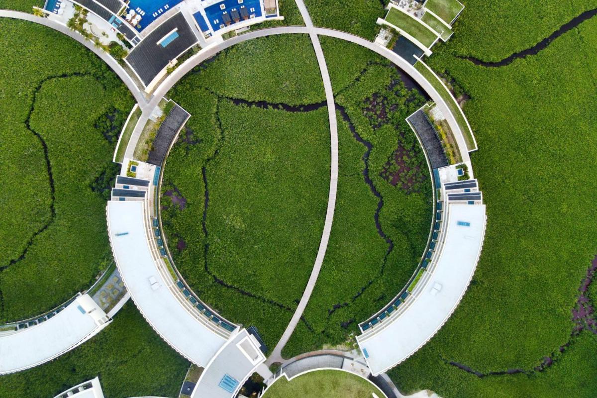 The St. Regis Kanai Resort stands out with its unique circular architecture, seemingly floating above the lush canopy of mangrove trees. This innovative design was inspired by the Pleiades constellation, a nod to the ancient Mayan astrological traditions. The resort’s finesse is not just limited to its exterior. Each room and suite of this resort is an embodiment of elegance, featuring private terraces or plunge pools, offering a private sanctuary for lovebirds.