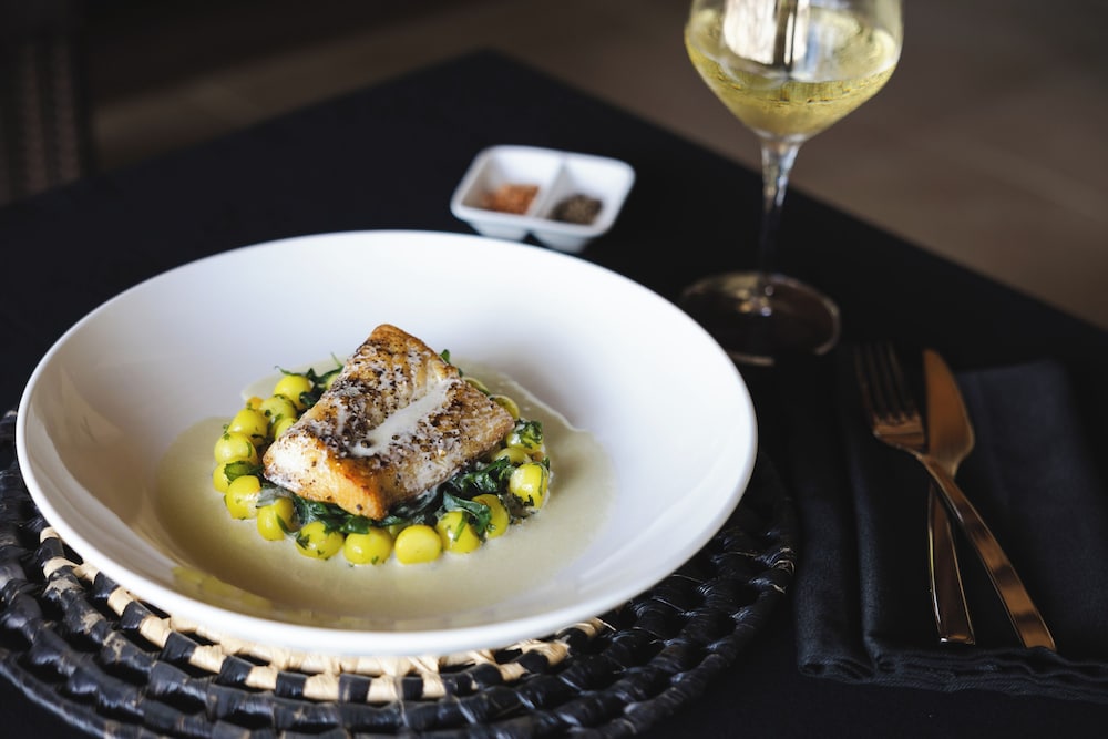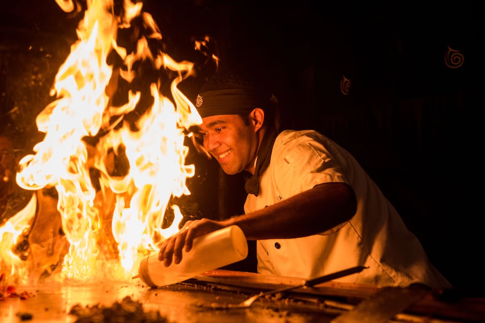 Indulge in a culinary journey with two delightful restaurants, including a romantic Teppanyaki restaurant and enchanting beachfront dining. For ultimate relaxation, unwind by one of the two guest pools or bask in the Fijian sun on the pristine beach. The resort offers a range of activities, from complimentary daily snorkeling trips to a PADI 5* dive center, tennis, and even an outdoor fitness platform.