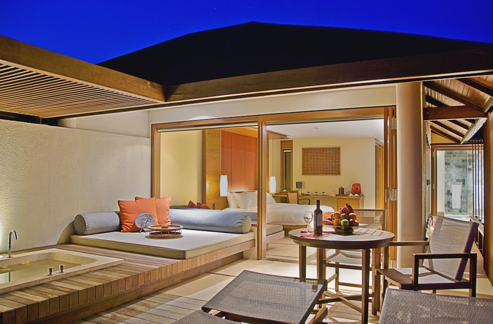 Revel in the luxury of beachside bliss as you sip cocktails at the beach bar, indulge in beachfront dining, and bask in the sun-soaked sands. Immerse yourself in relaxation at Araamu Spa, where body treatments and thalassotherapy rejuvenate your senses. With five onsite restaurants offering international cuisine, culinary delights are elevated by poolside views and an array of flavors.